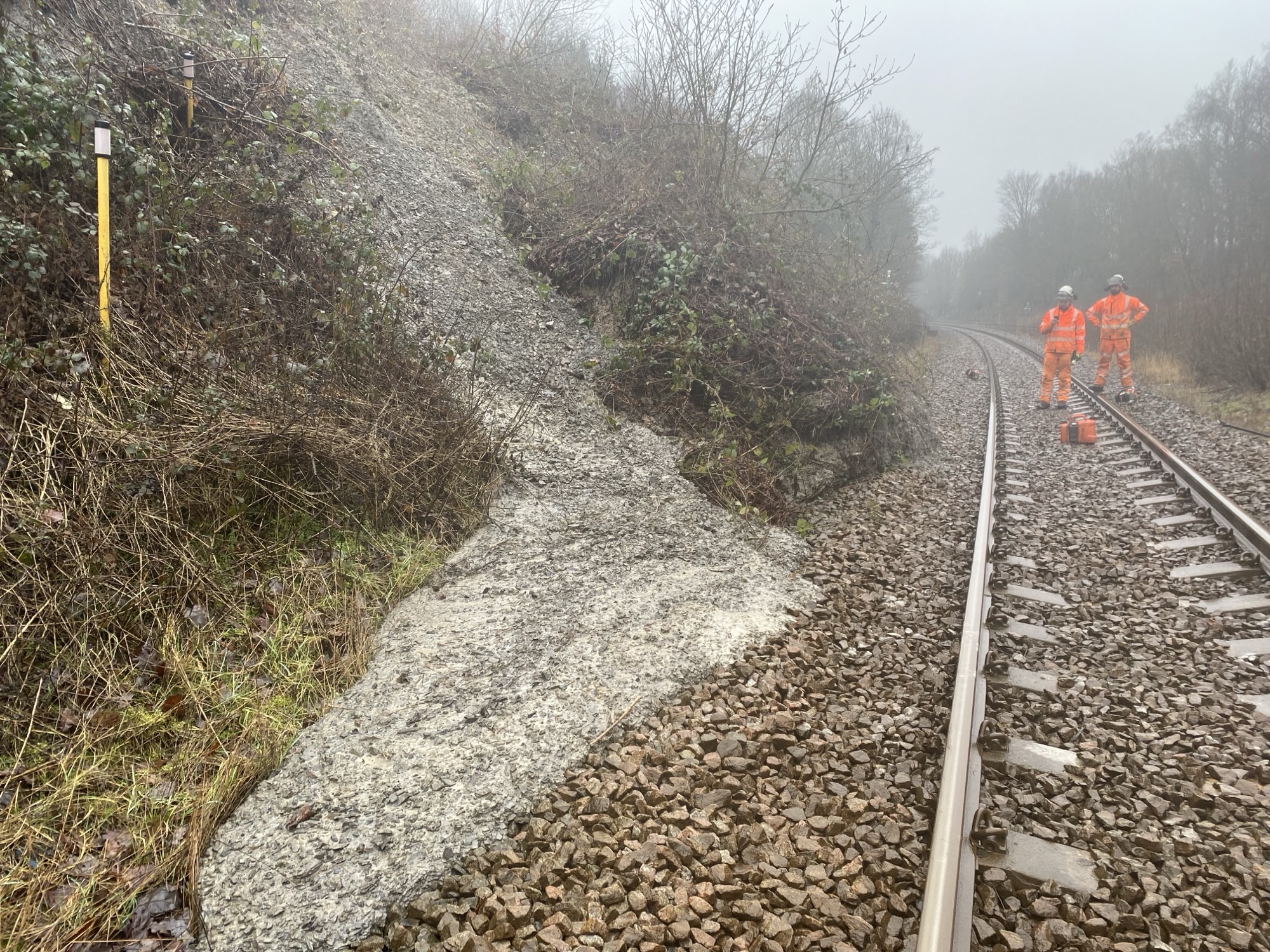 A slow-moving landslip in a cutting near Woolley Tunnel, north of Darton, was reported to Network Rail on Wednesday morning (11 February). It had not reached the track.
