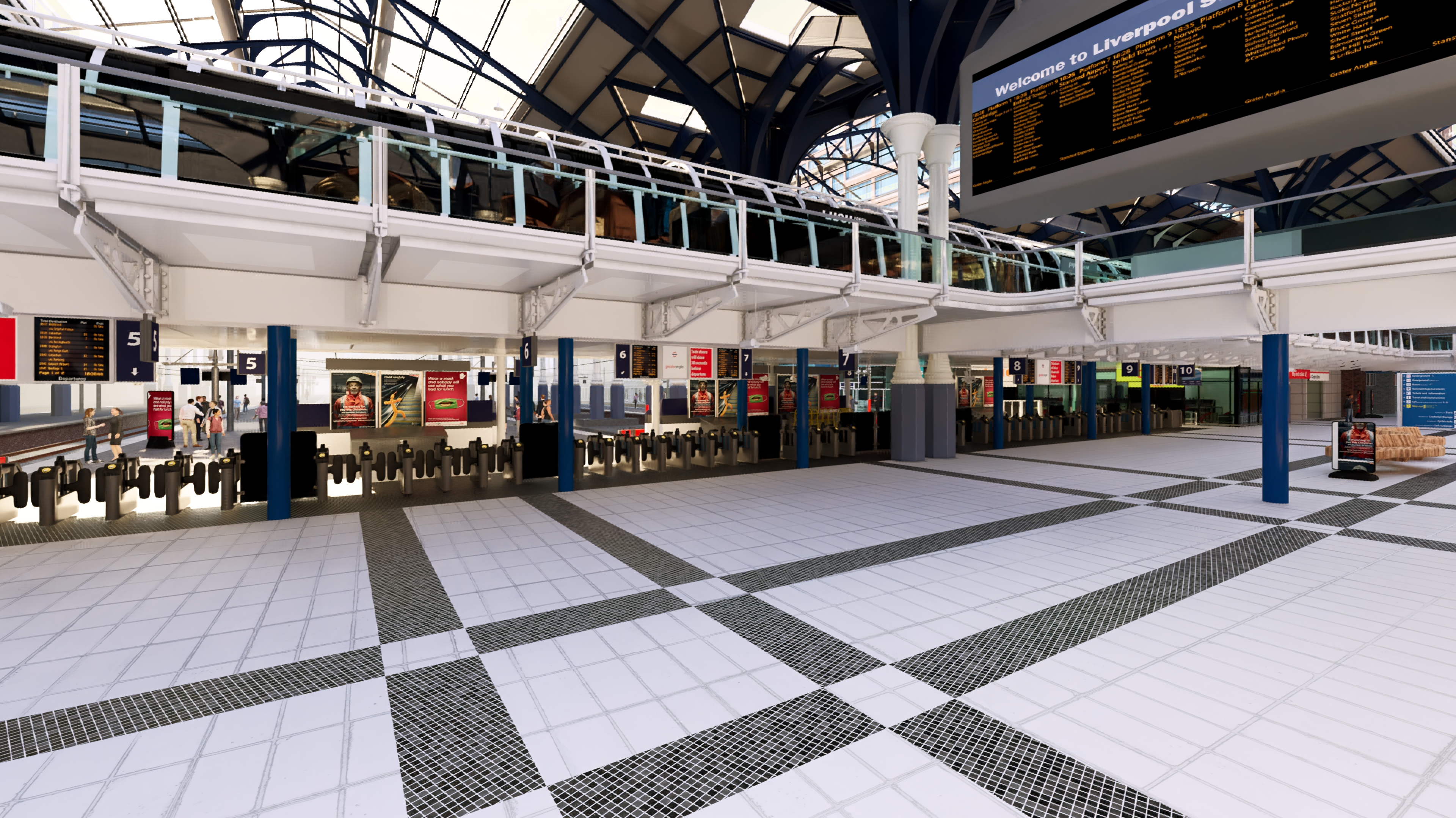 A range of improvements will make the passenger station experience better at London Liverpool Street including more ticket gates new retail units and a new Greater Anglia ticket office on Platform 10.