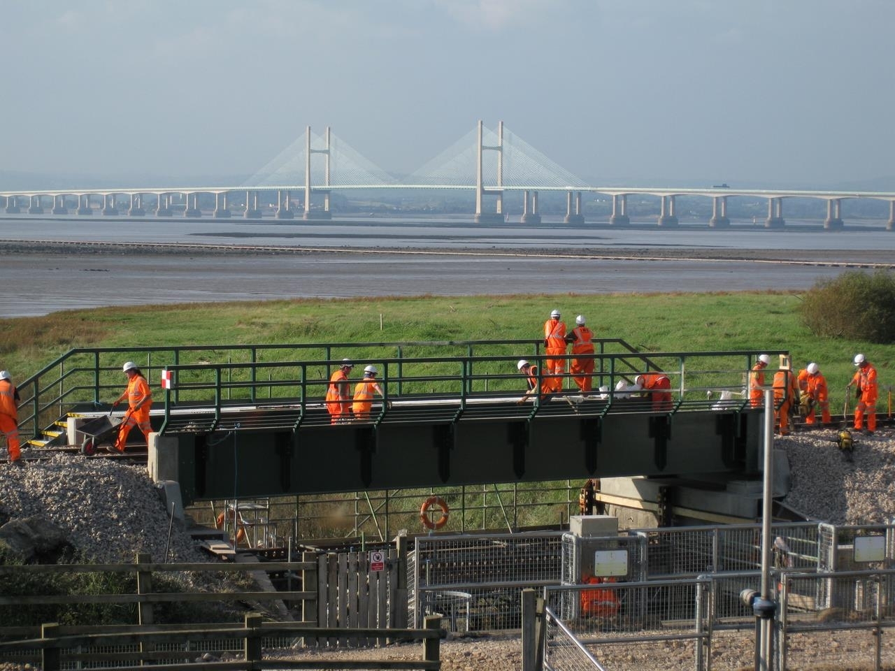 The bridge's walkway, hand railings and stone ballast were assembled first before the bridge deck was slotted into place. The number of hours that the railway line was closed for this improvement work was significantly cut back by 75%.