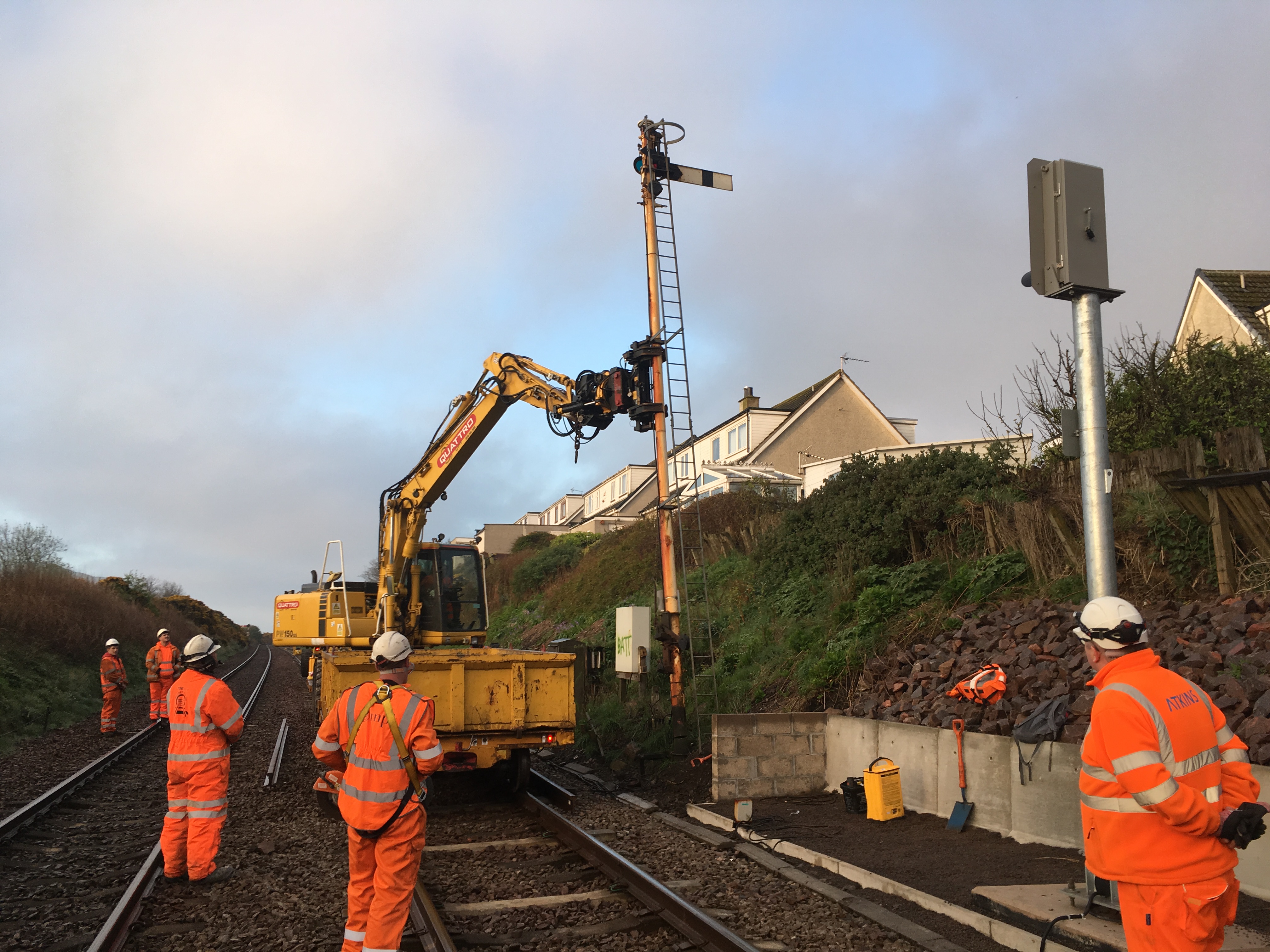 Engineers worked continuously from Saturday night to Monday morning to bring into service new LED signals and axle-counters. Newtonhill signal box was de-commissioned and control of the signalling section relocated to Aberdeen.