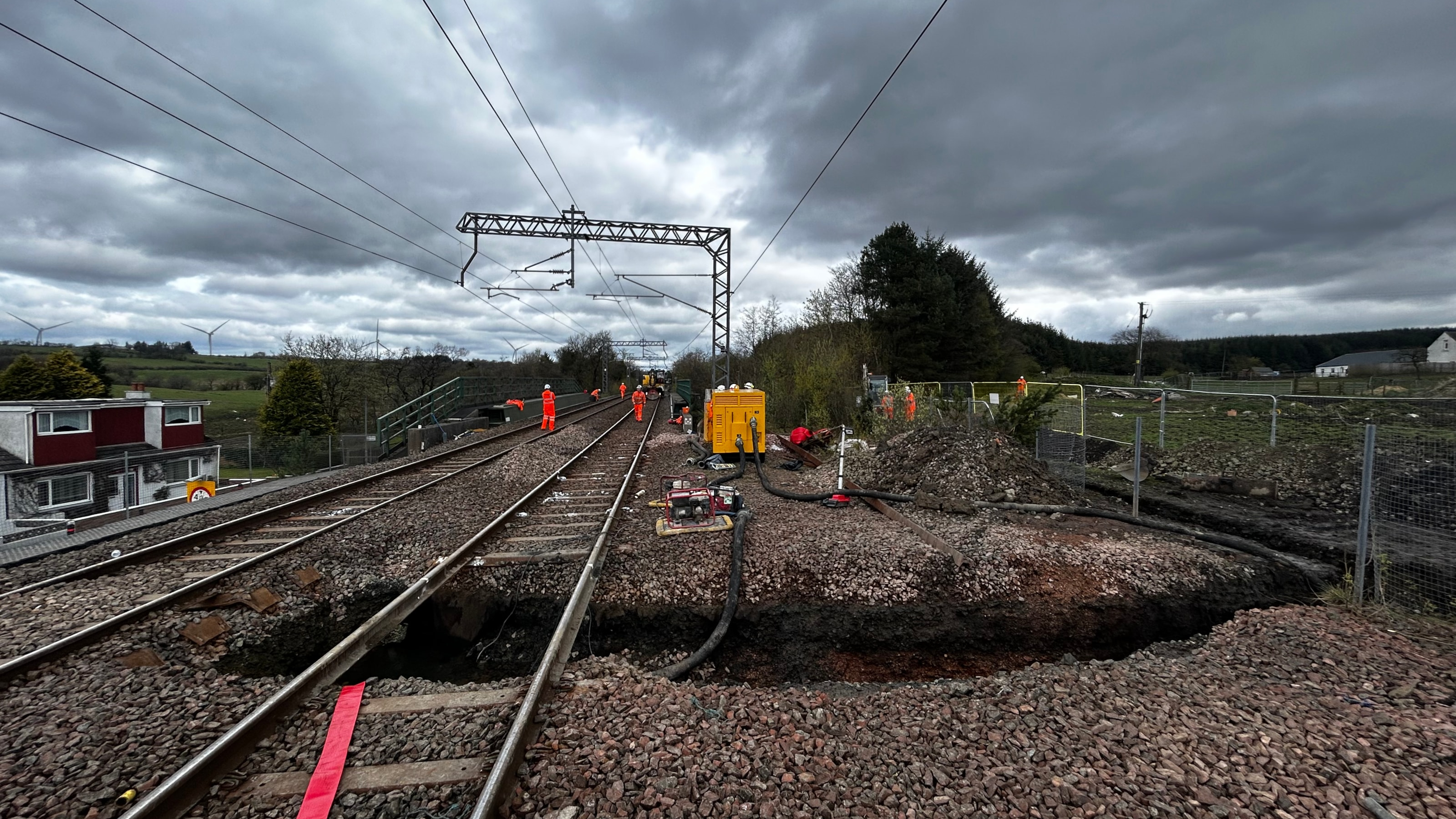 Ross Moran, Interim Route Director for Network Rail Scotland, said: “Sinkholes like this are very unusual on the railway, and our specialist geotechnical engineers are working tirelessly to identify the cause, as well as planning the repairs, so we can reopen the railway.