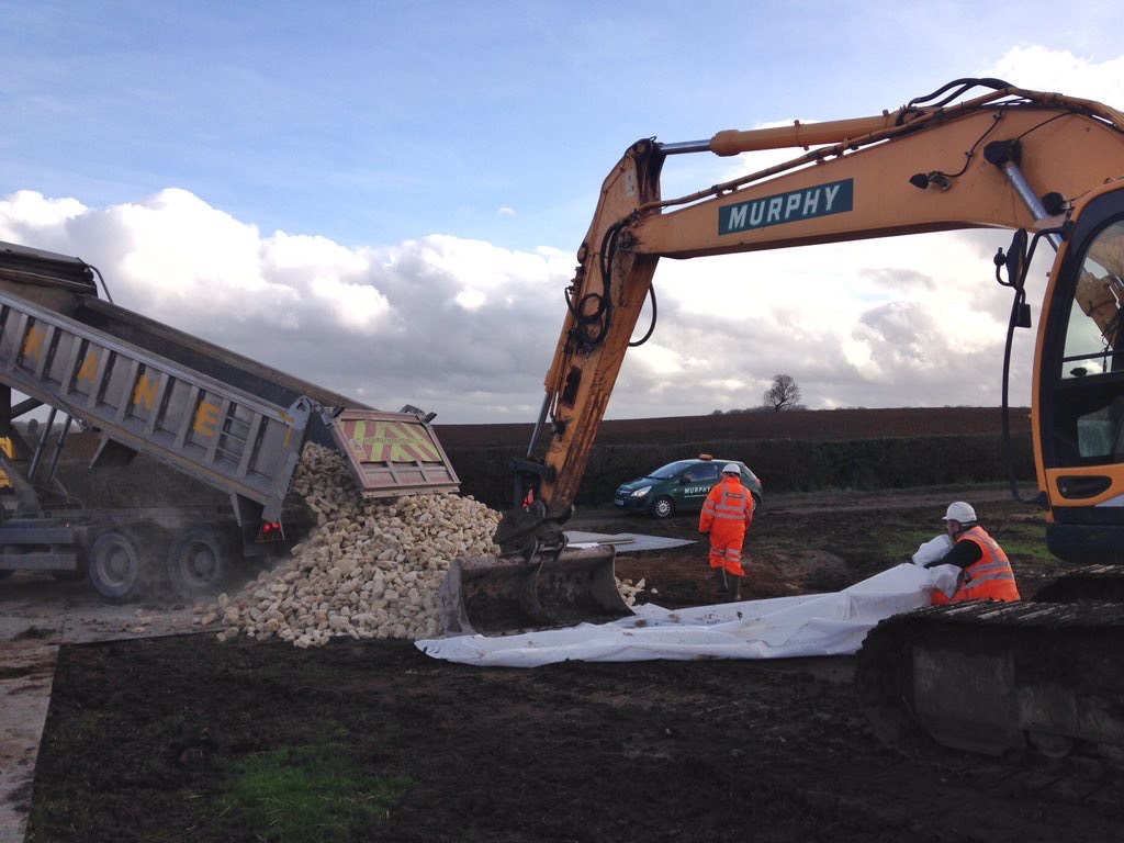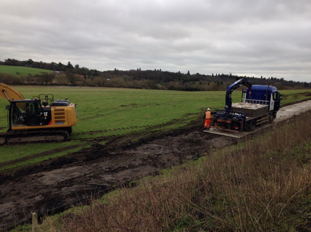 Engineers were today building an access road through nearby fields so lorries could transport 2,200 tonnes of railway foundation stone to the site.