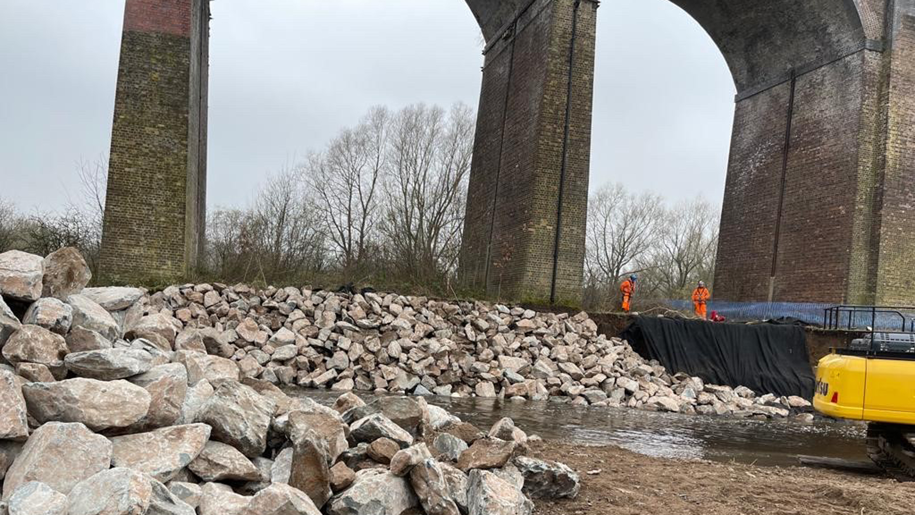 Anti-erosion work underway beneath Greater Manchester railway viaduct