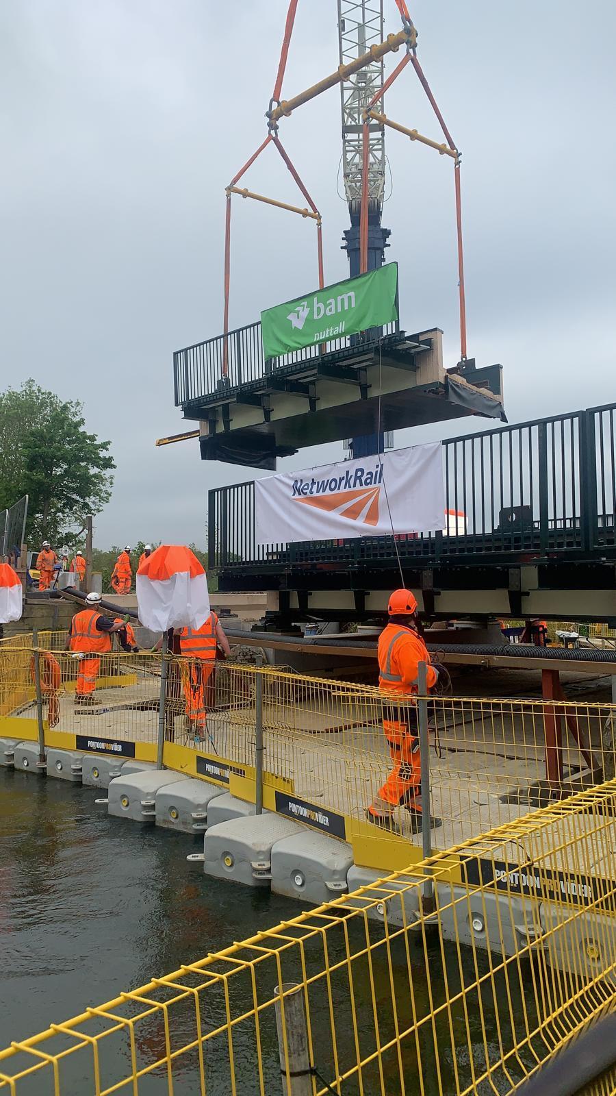 It was a busy bank holiday for Network Rail on the line to the Kent coast, where a new type of bridge has been carefully built over the River Stour at Chartham between Ashford and Canterbury.
