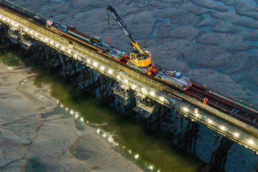 Network Rail is carrying out additional work during the £30m restoration, including replacing all the timber main beams. The upgrade has been designed to avoid changing the viaduct’s appearance, with the mechanism for the swing span remaining in place. The entire 820m length of track will also be replaced.