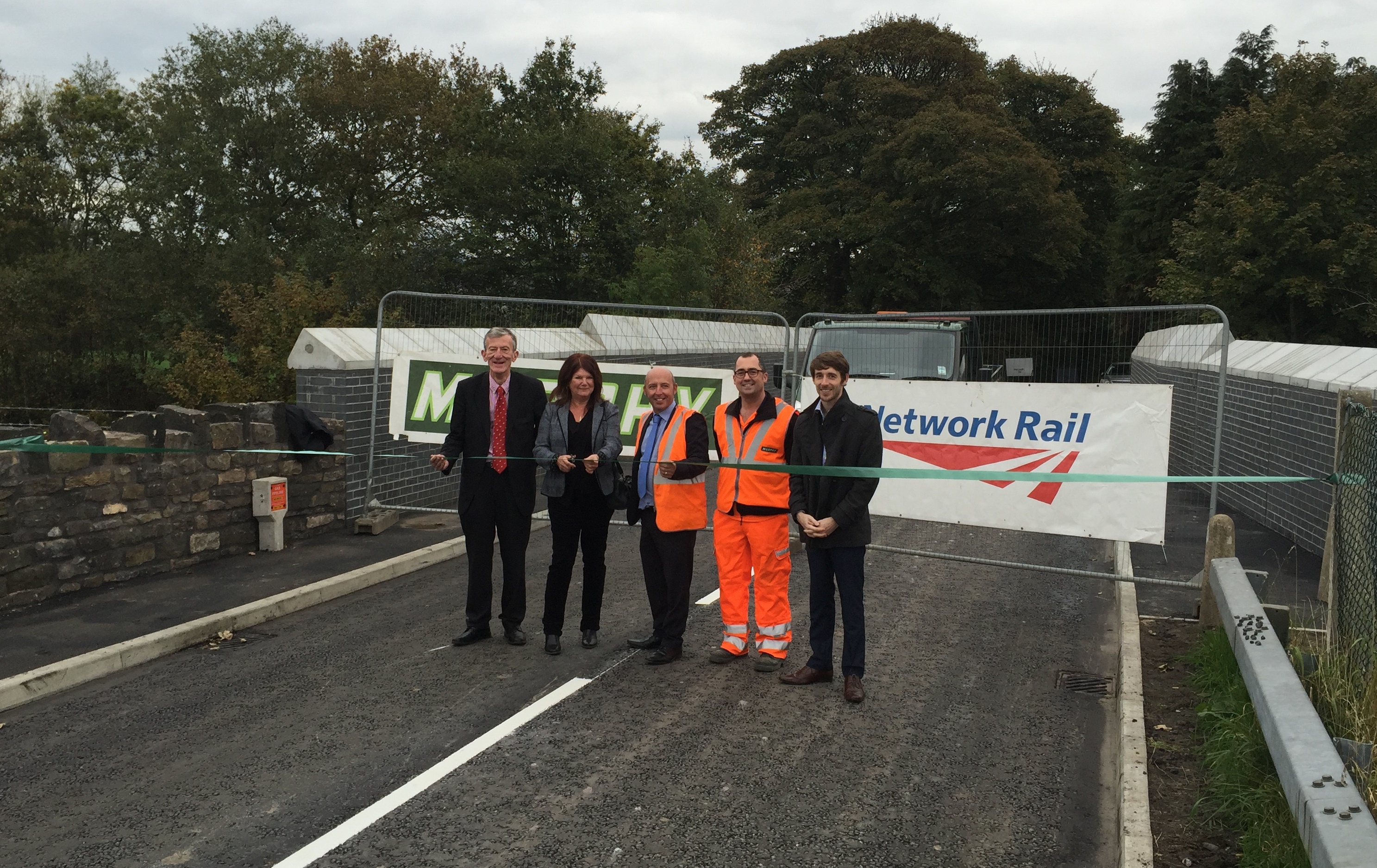 The photograph shows (from left): Councillor David Chadwick, Councillor Ann Cunliffe, Brendan McNeill (Murphys), Paul Davies (Murphys) and Stephen Cooper of Network Rail.