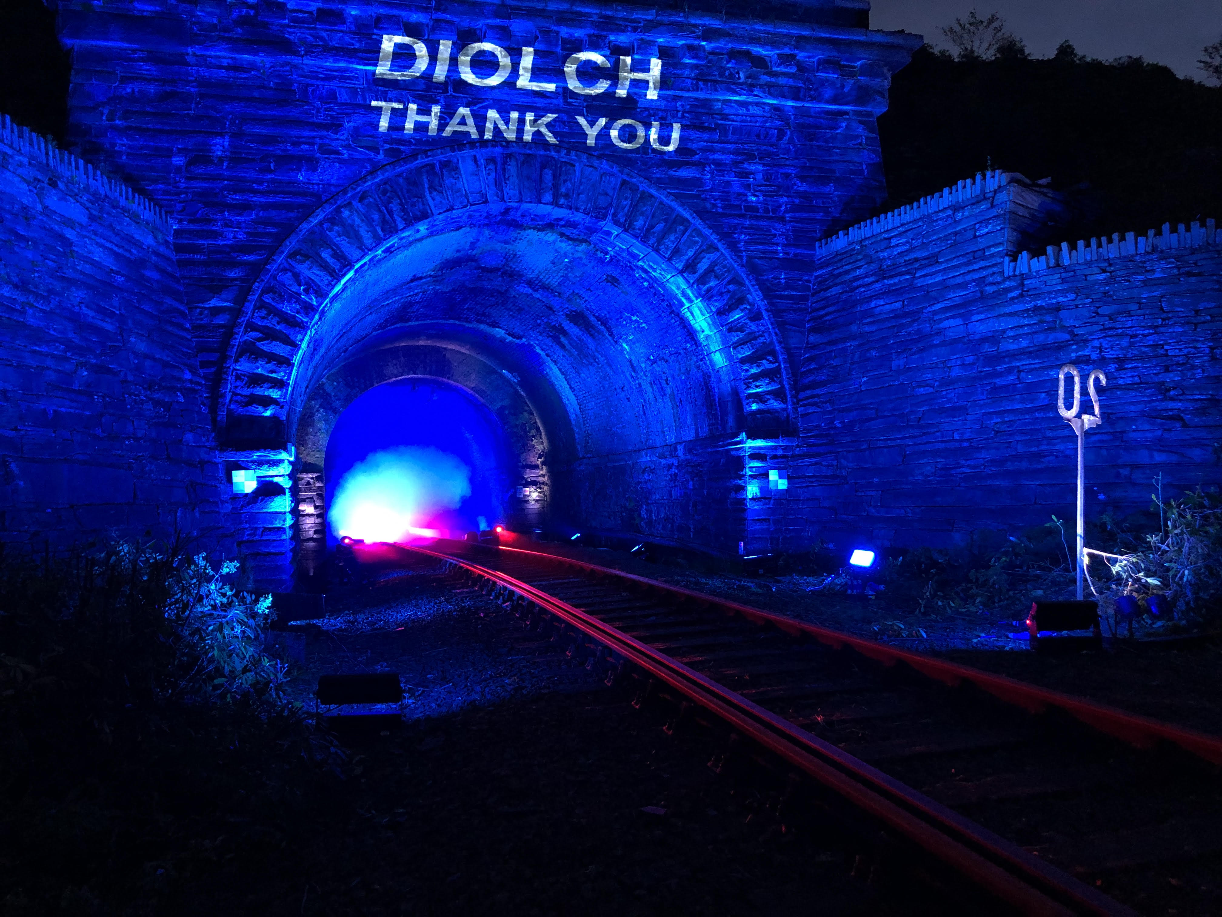 Blaenau Ffestiniog tunnel went blue for NHS and all critical workers