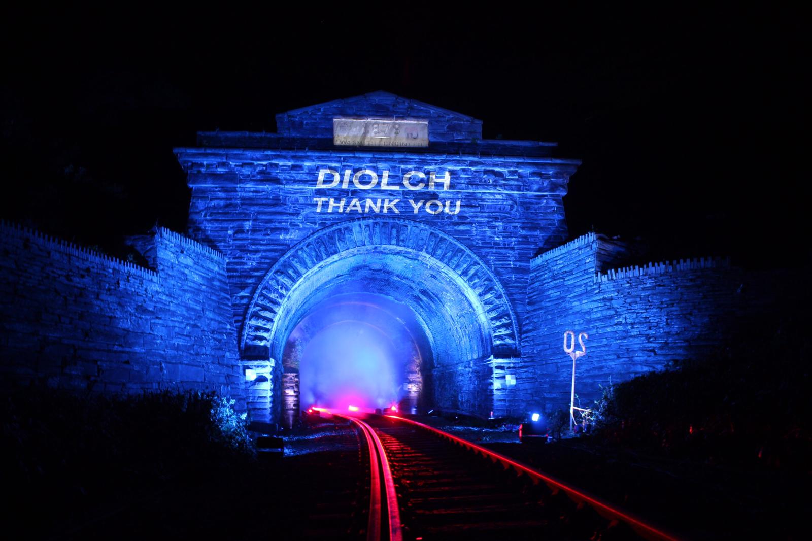 Network Rail lit up the Blaenau Ffestiniog tunnel last night (7 May) at 20:00hrs in honour and gratitude to all NHS staff and other workers who are battling the coronavirus crisis.