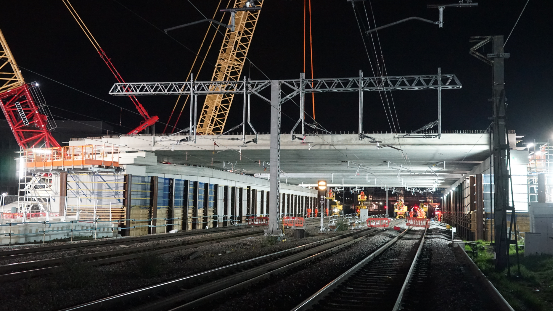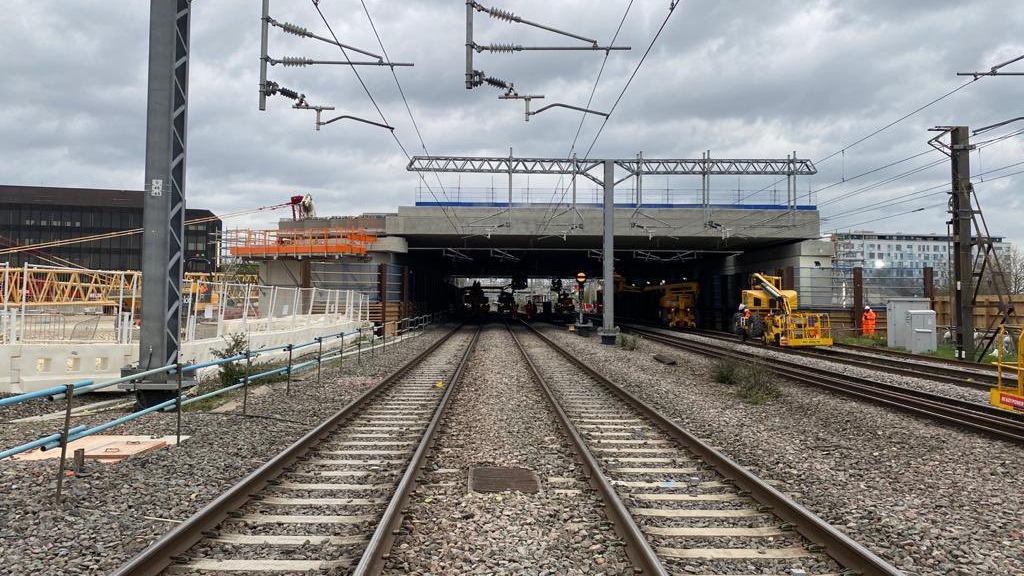 - The rebuild included an innovative design to install the flyovers support structure using 138 oncrete shell abutments and culminated in the installation of 103, 40 tonne precast concrete beams required to construct the new box bridge over the WCML during the early May bank holiday in 2021. During this possession the project team also dismantled and reassembled the complex web of 25,000-volt overhead electric cables underneath the new flyover.