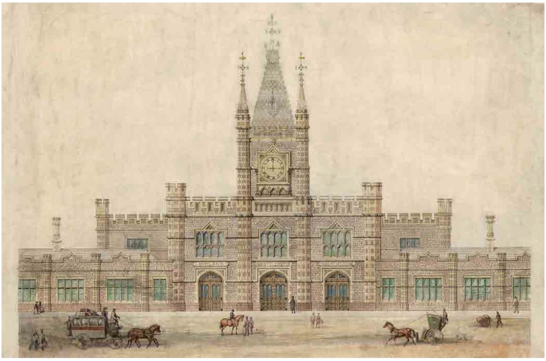 Brunel’s mock Tudor station building, which opened on 31 August 1840, was seen as a template for other railway terminals at the time, and was described by some as being “the finest work in England”. When it opened, the station consisted of an arrivals and departure platform for the Great Western Railway, taking passengers as far as Bath before through traffic to London was introduced almost a year later. The Bristol Committee of Great Western Railway also had offices at the station.