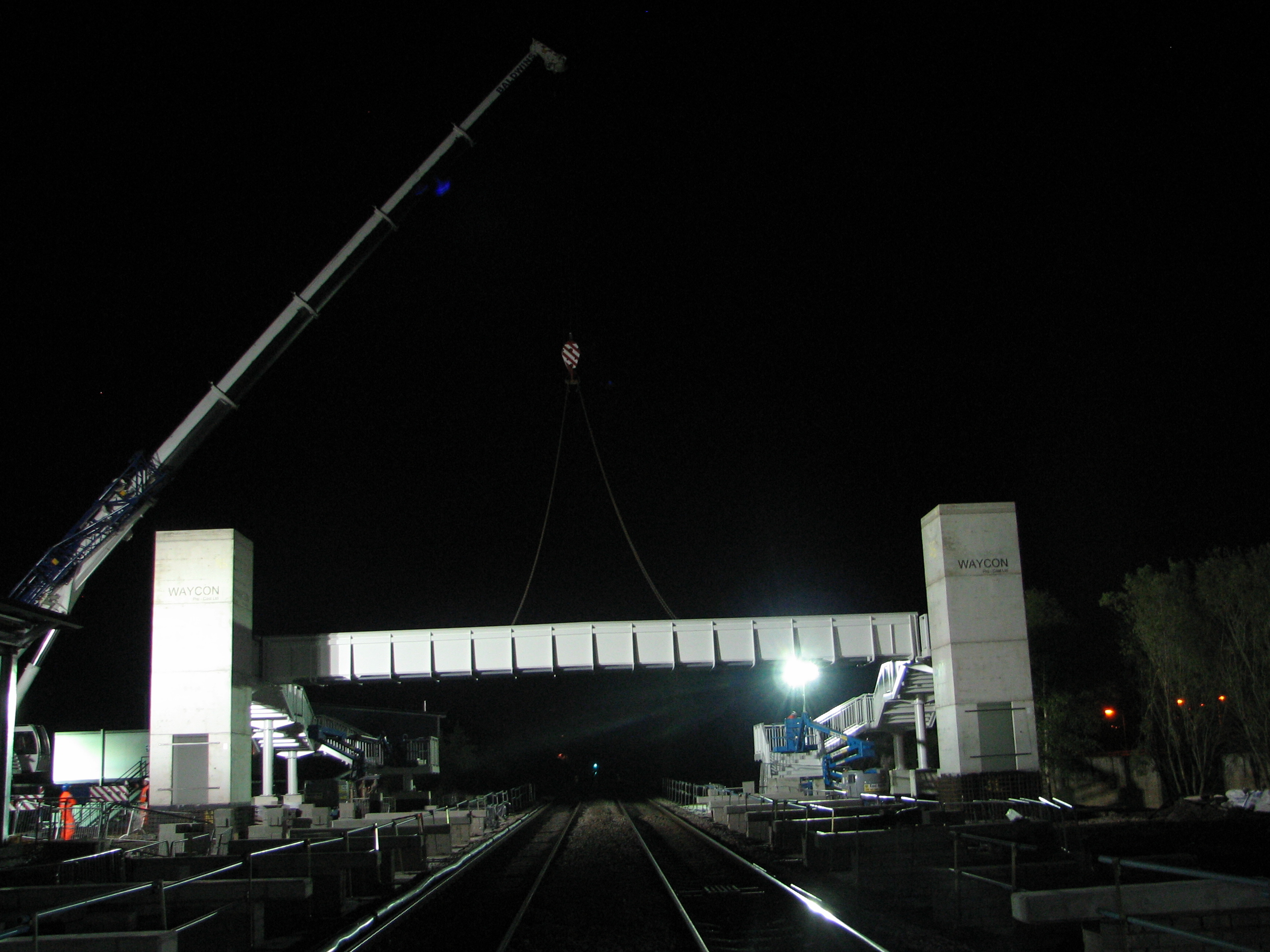 In the early hours of Sunday morning (10 July 2011) the 24-metre pedestrian footbridge was hoisted into position by crane marking a key milestone in the development of Buckshaw Parkway.