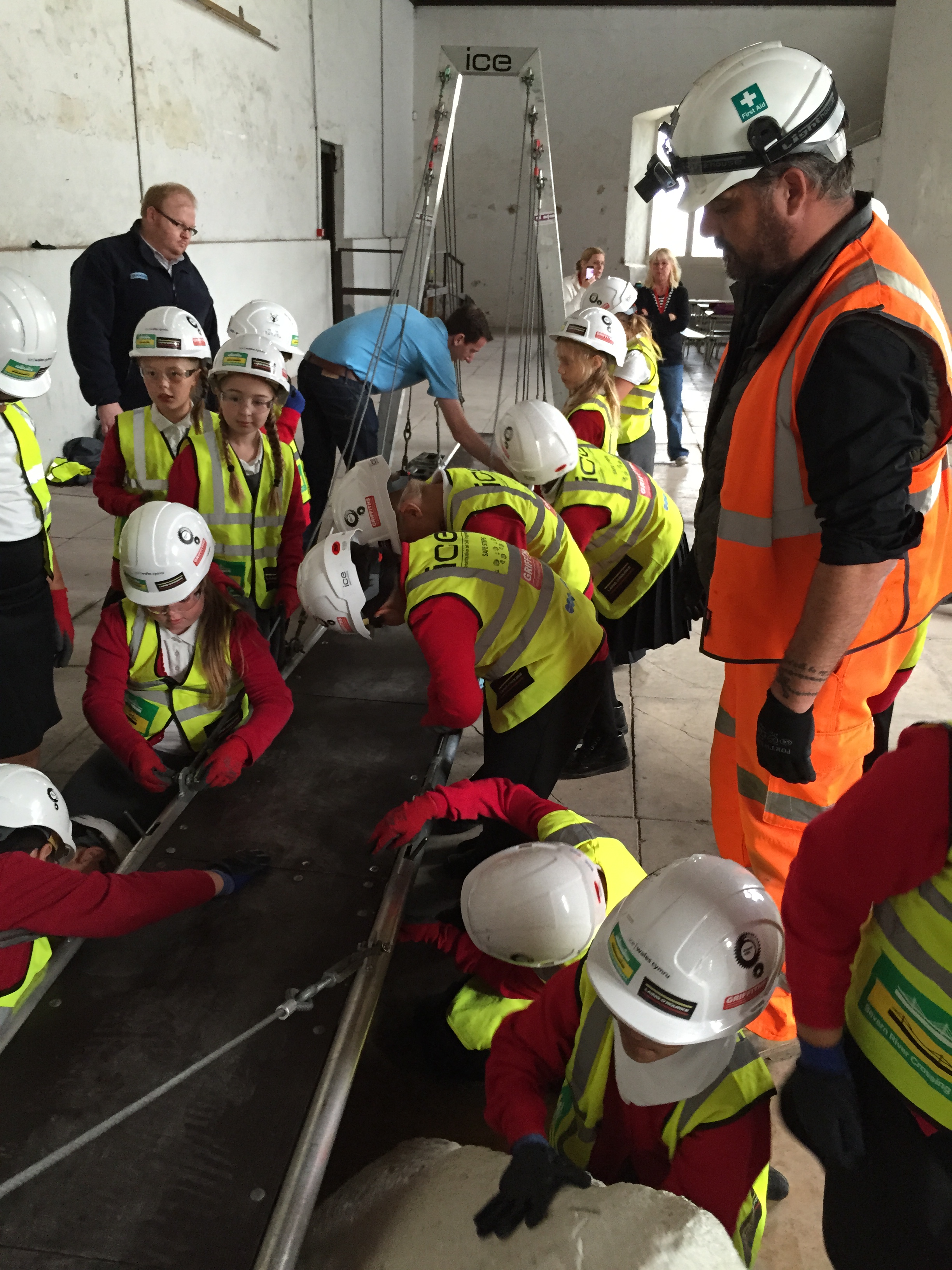 The children donned high visibility jackets, hard hats, gloves and safety glasses to carry out the work.