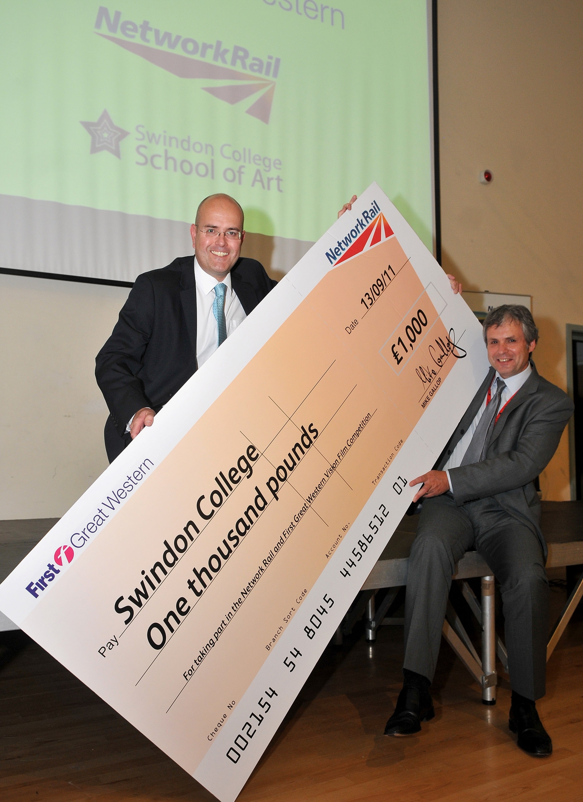 Following the individual awards, Mike Gallop presented Swindon College principal Andrew Miller with a cheque for £1000.