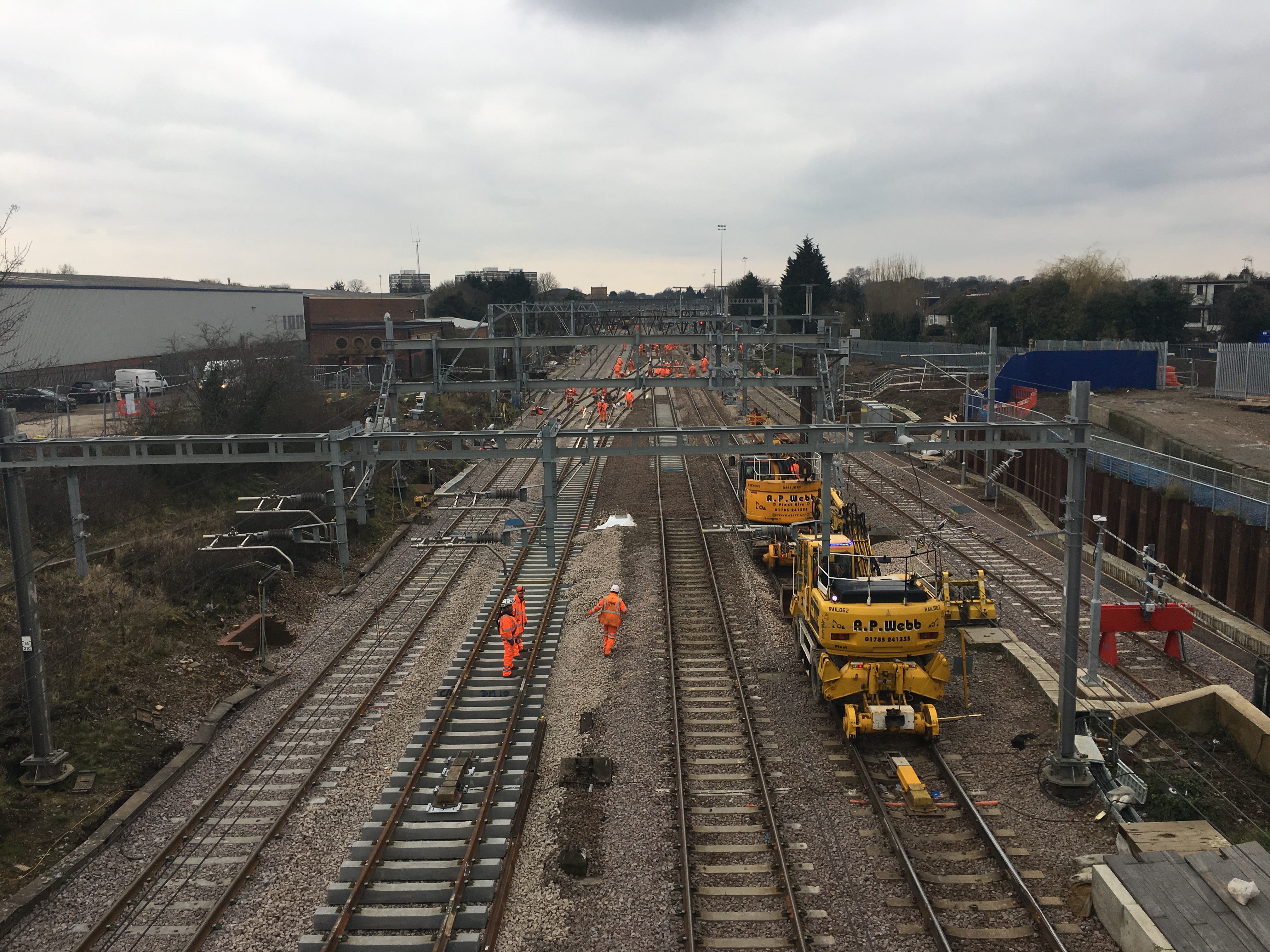 - New structures that will carry new overhead wires were installed at Forest Gate
