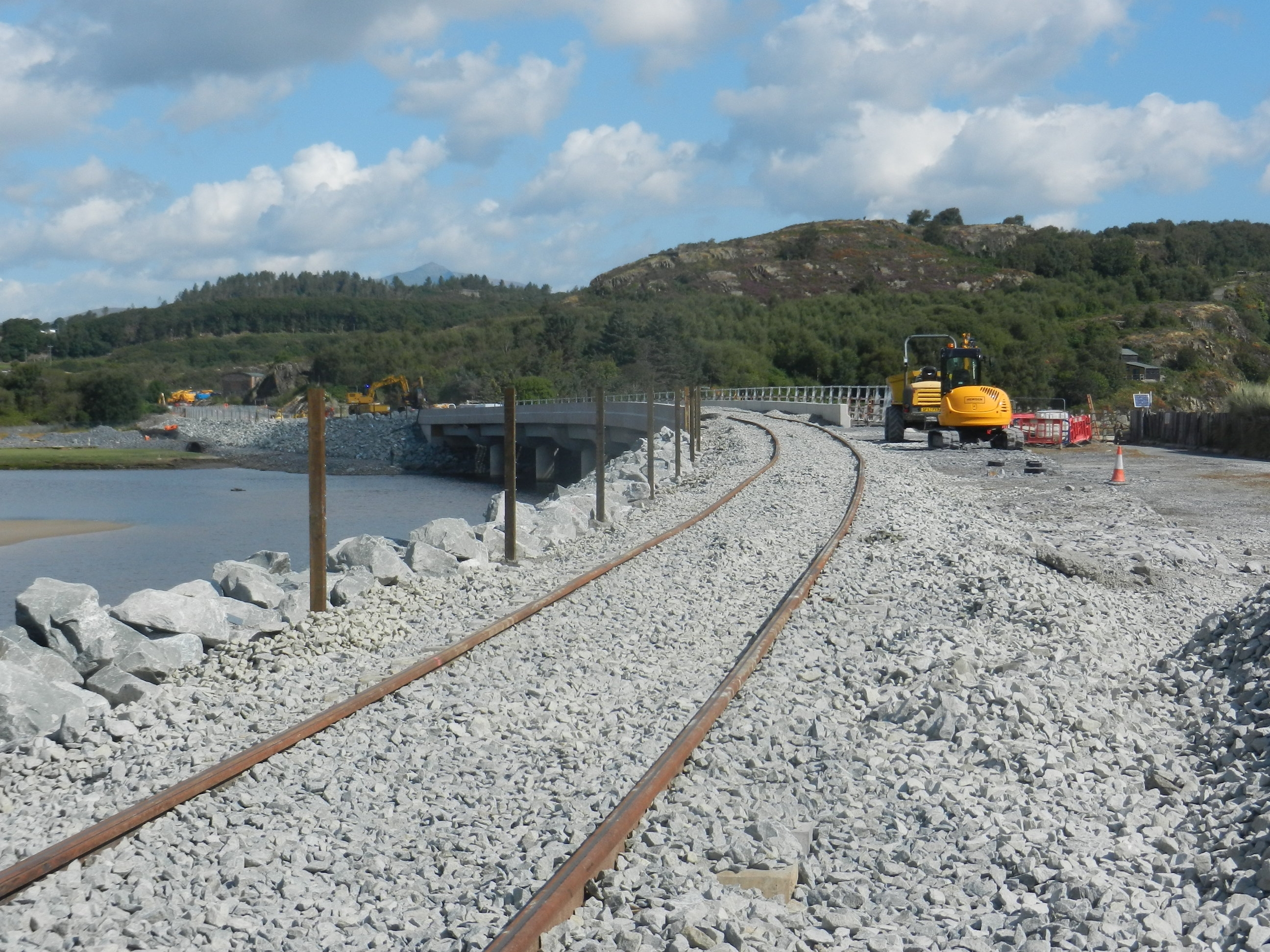 Work continued at Pont Briwet through the summer months and, now the rail-bridge is complete, trains can continue onward from Harlech to Pwllheli.