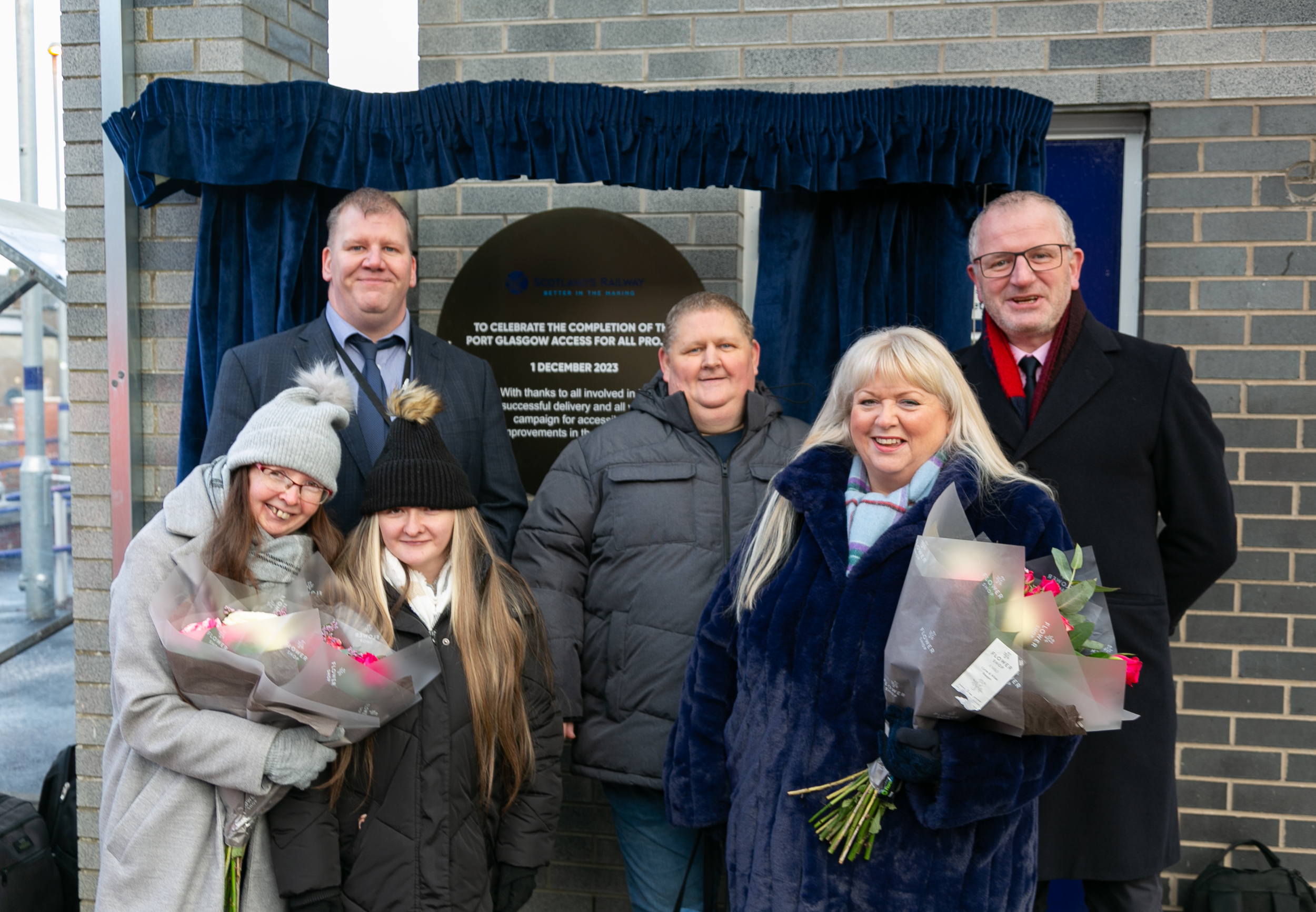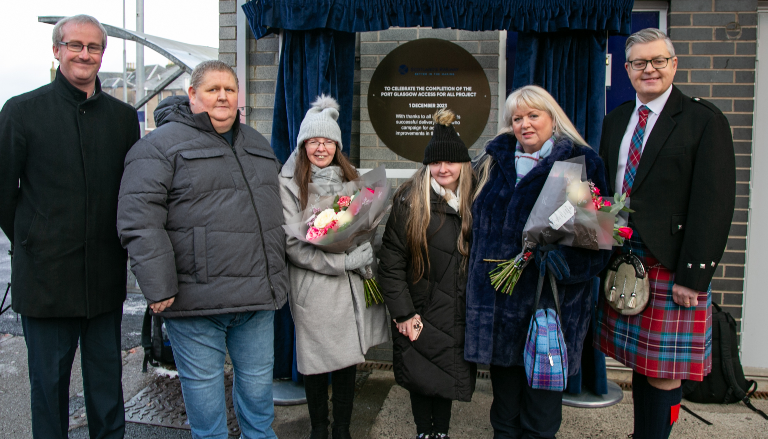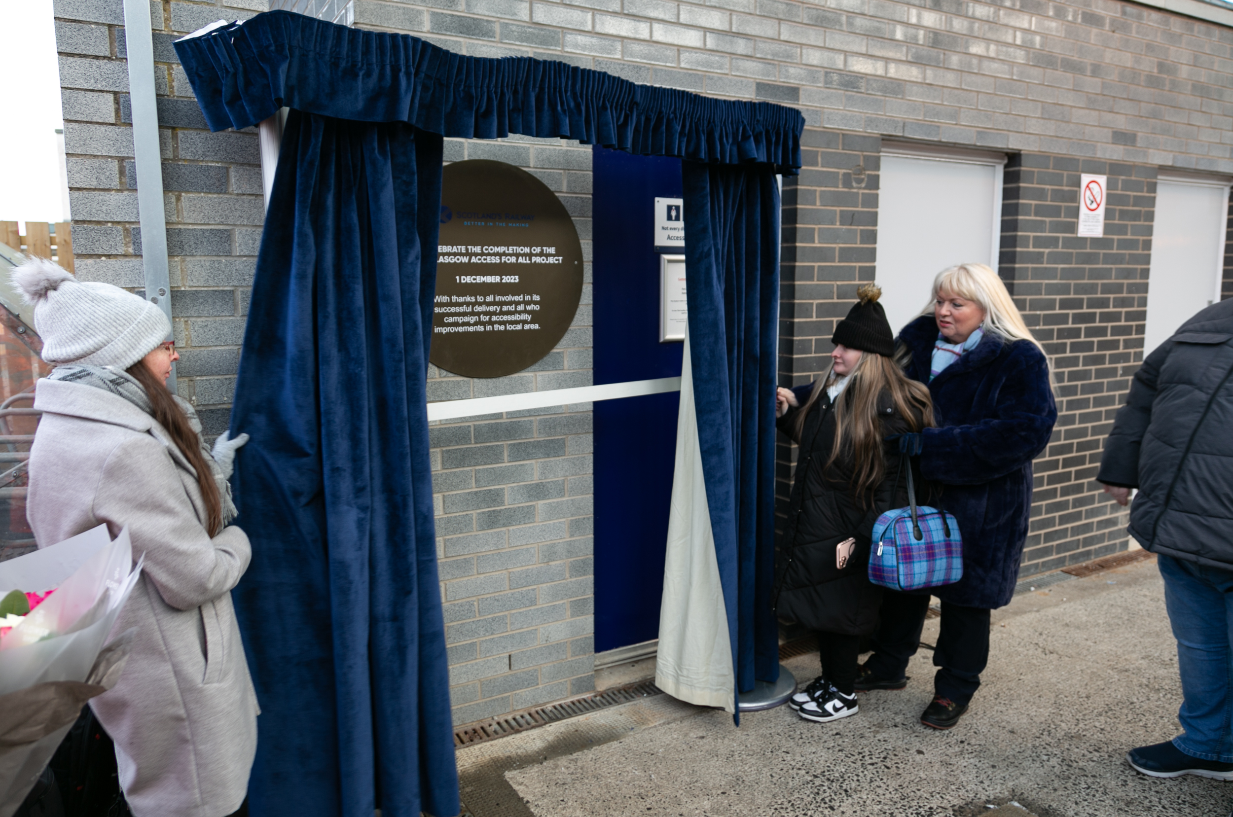 As part of the opening ceremony, a commemorative plaque was unveiled at the station by Sylvia MacLeod, widow of former councillor, Jim MacLeod, alongside Andrew and Angela Hurrell whose daughter Stephanie passed away in 2020. Both Jim and Stephanie were known locally for their efforts to improve accessibility in the Port Glasgow area.