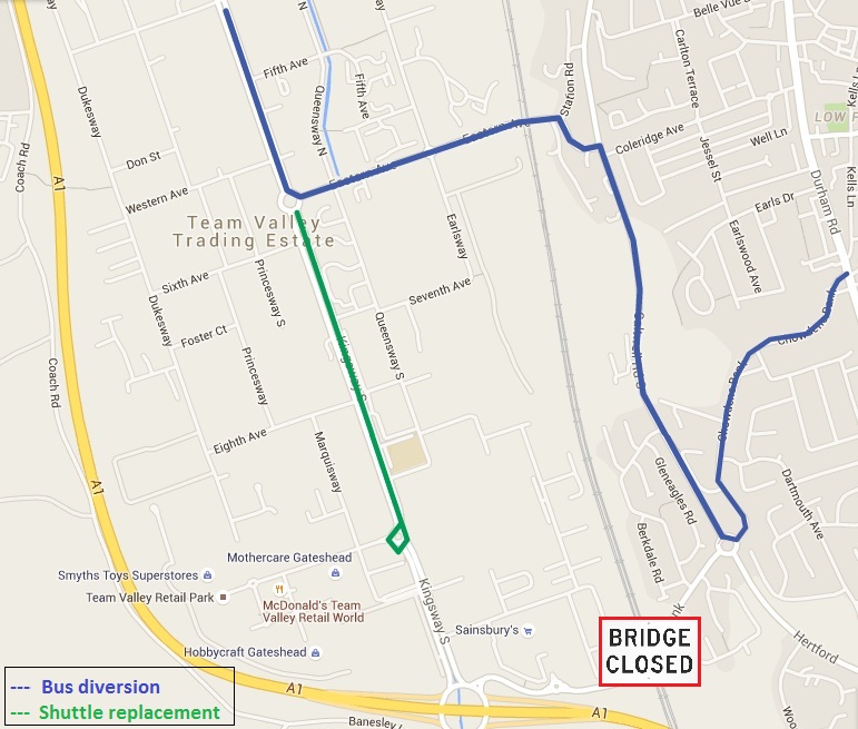 Reconstruction of Chowdene Bank railway bridge will begin on Monday 26 October, with the existing road and pavement to be lifted out and replaced with new surfaces to increase the lifespan of the bridge, while work will also take place to strengthen the structure which crosses the East Coast Main Line.