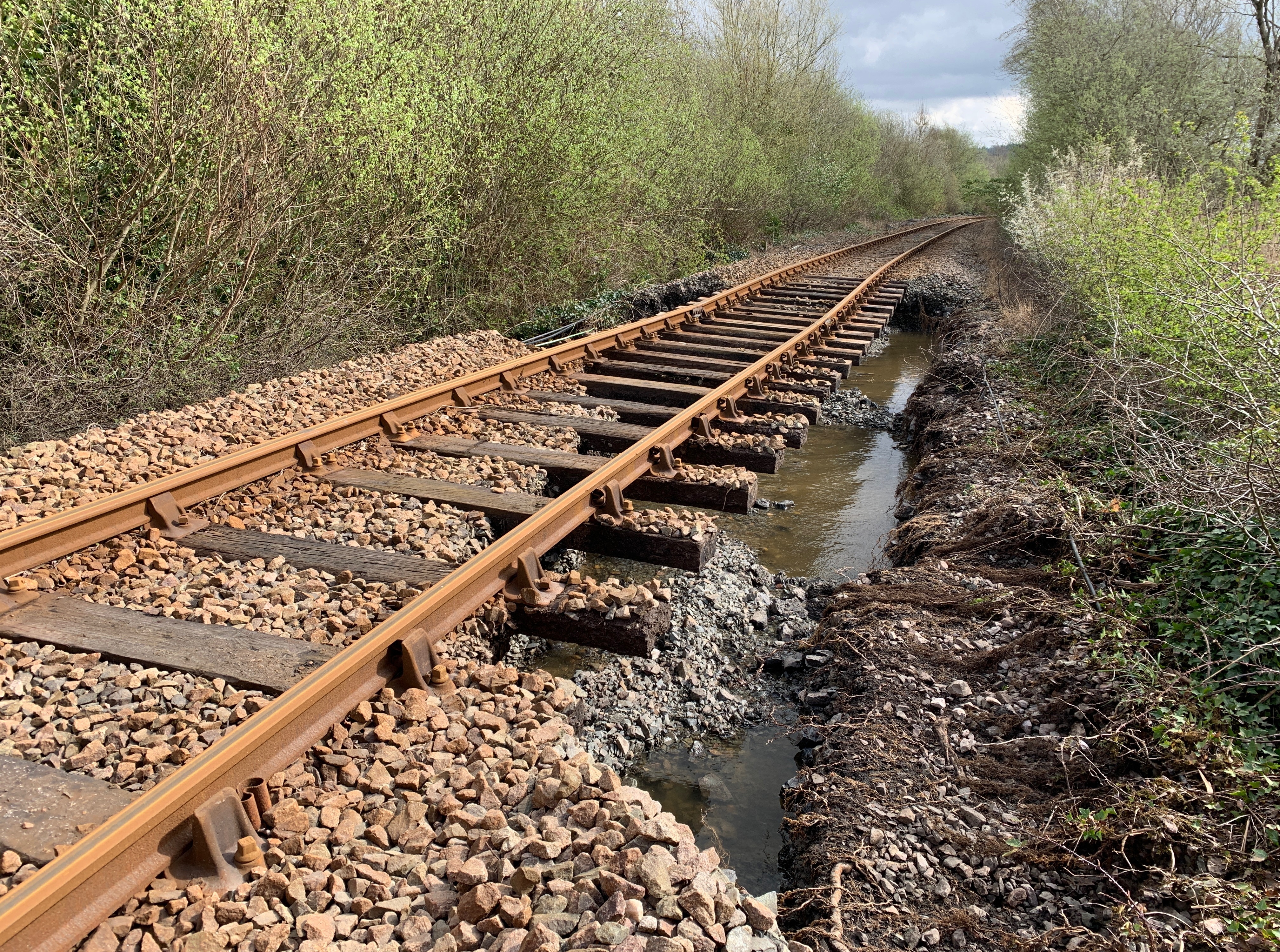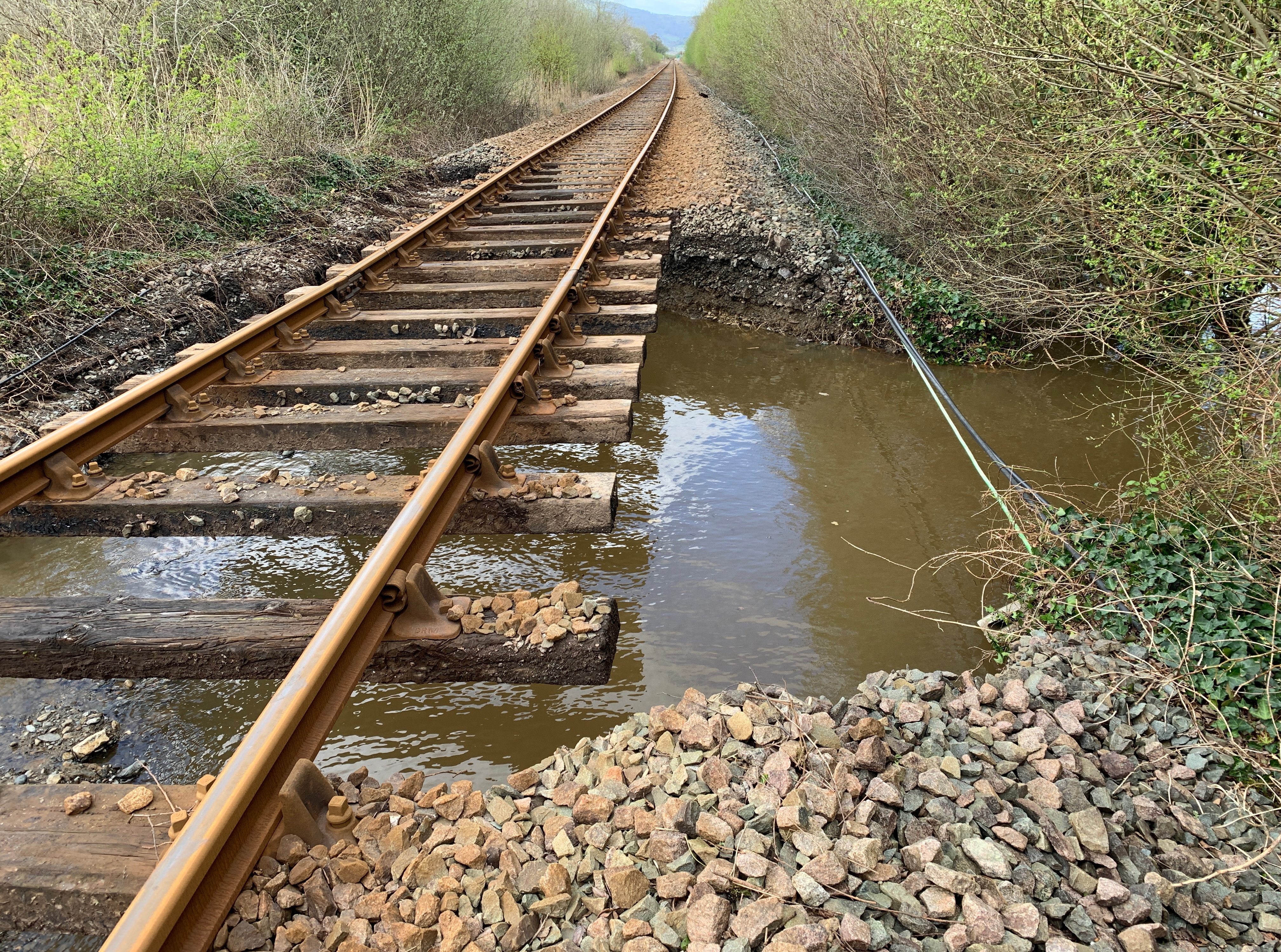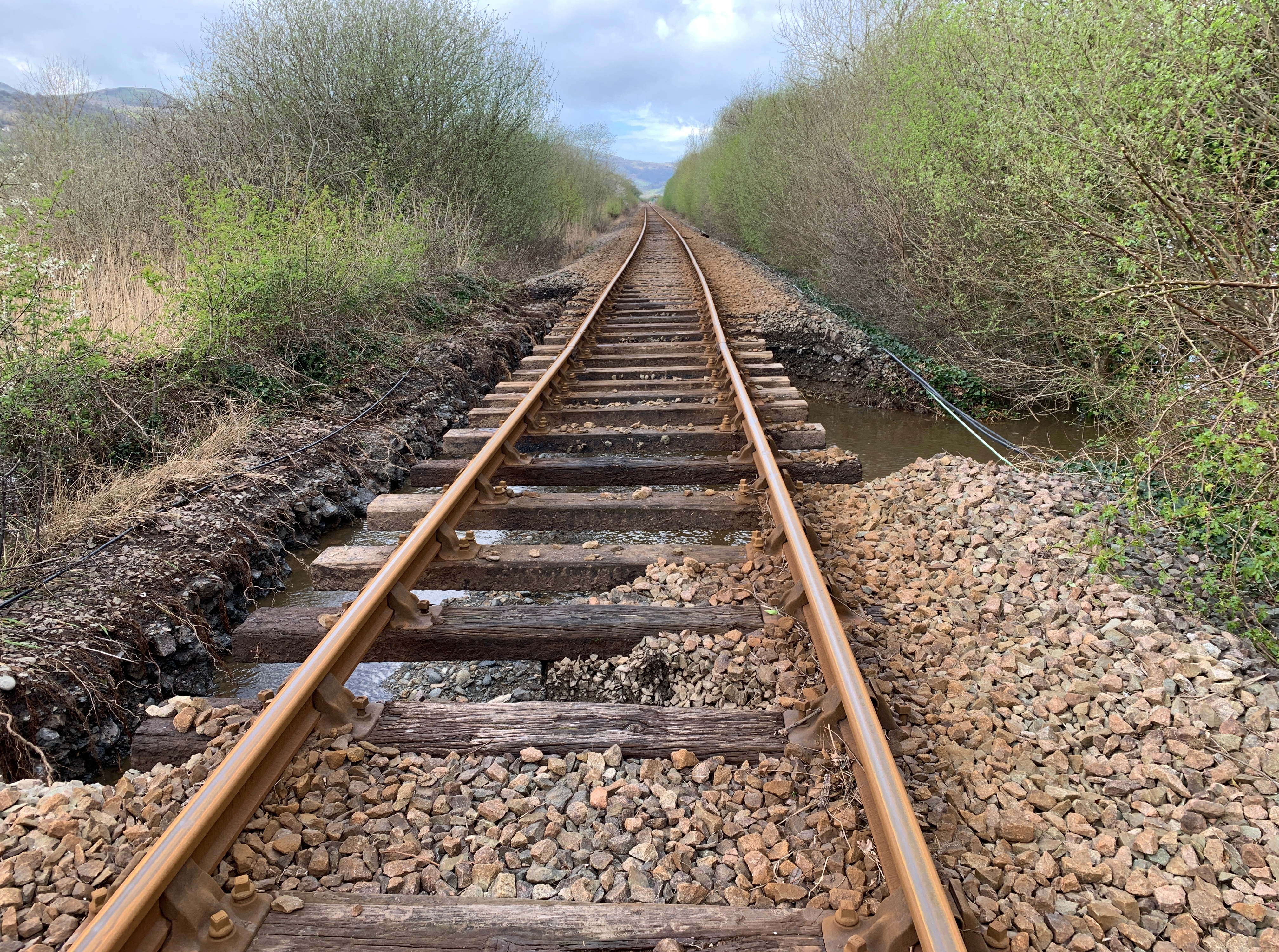 The line was closed on Tuesday afternoon (9 April) after river flooding washed away ballast (the stones that support the track) near Dolgarrog station.