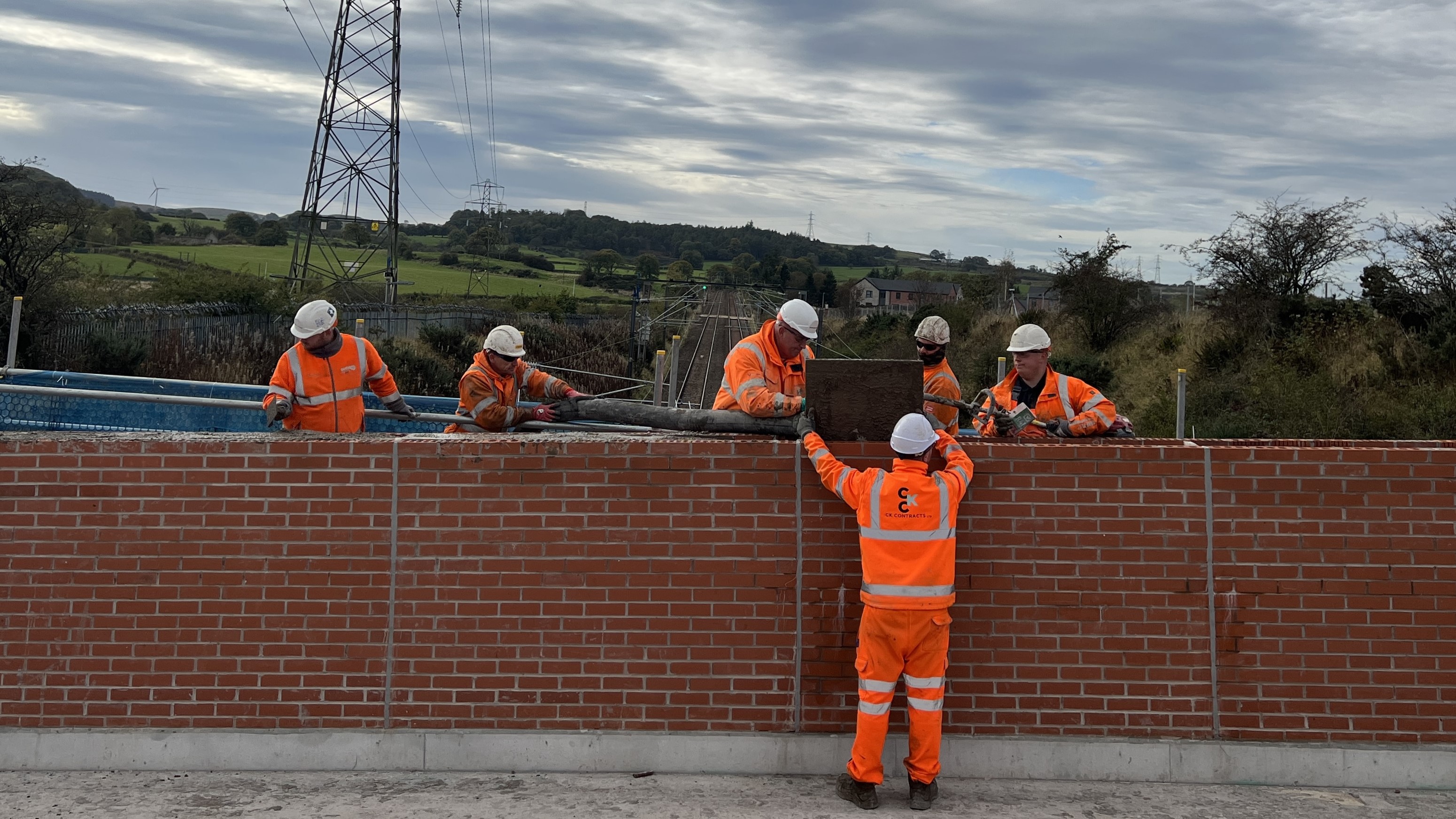 Early reconstruction saw the team work around the clock using a KIROW 1200, the largest rail-mounted crane in the UK, to lift the pre-cast concrete components into place whilst the railway between Cathcart and Neilston was closed.