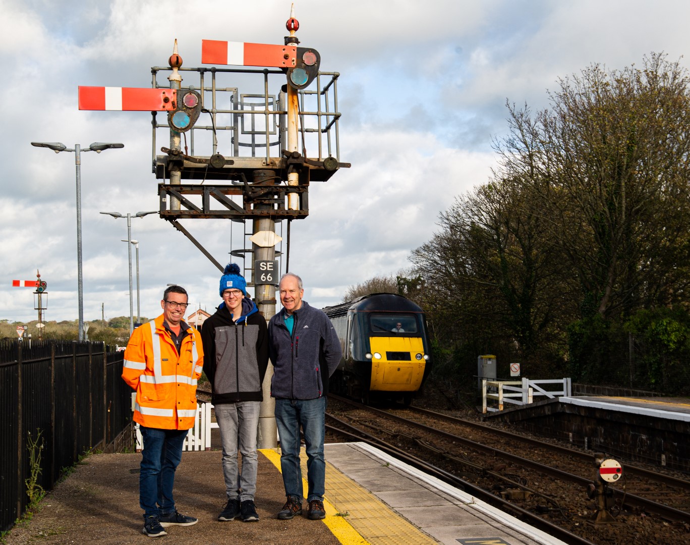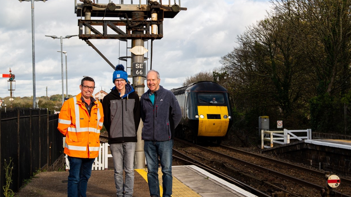 Photo, left to right: Craig Munday, Network Rail mobile operations manager, William Beynon, William's grandfather Ivor Parsons