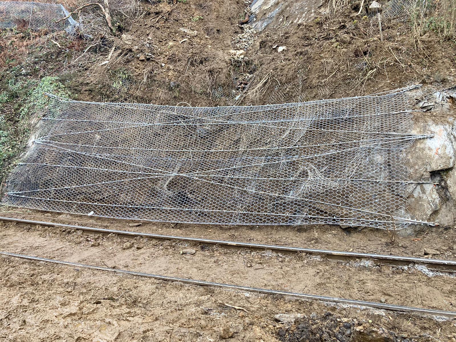 Engineers have removed over 200 tonnes of landslip material and installed a barrier system to protect the railway while more extensive work is carried out.