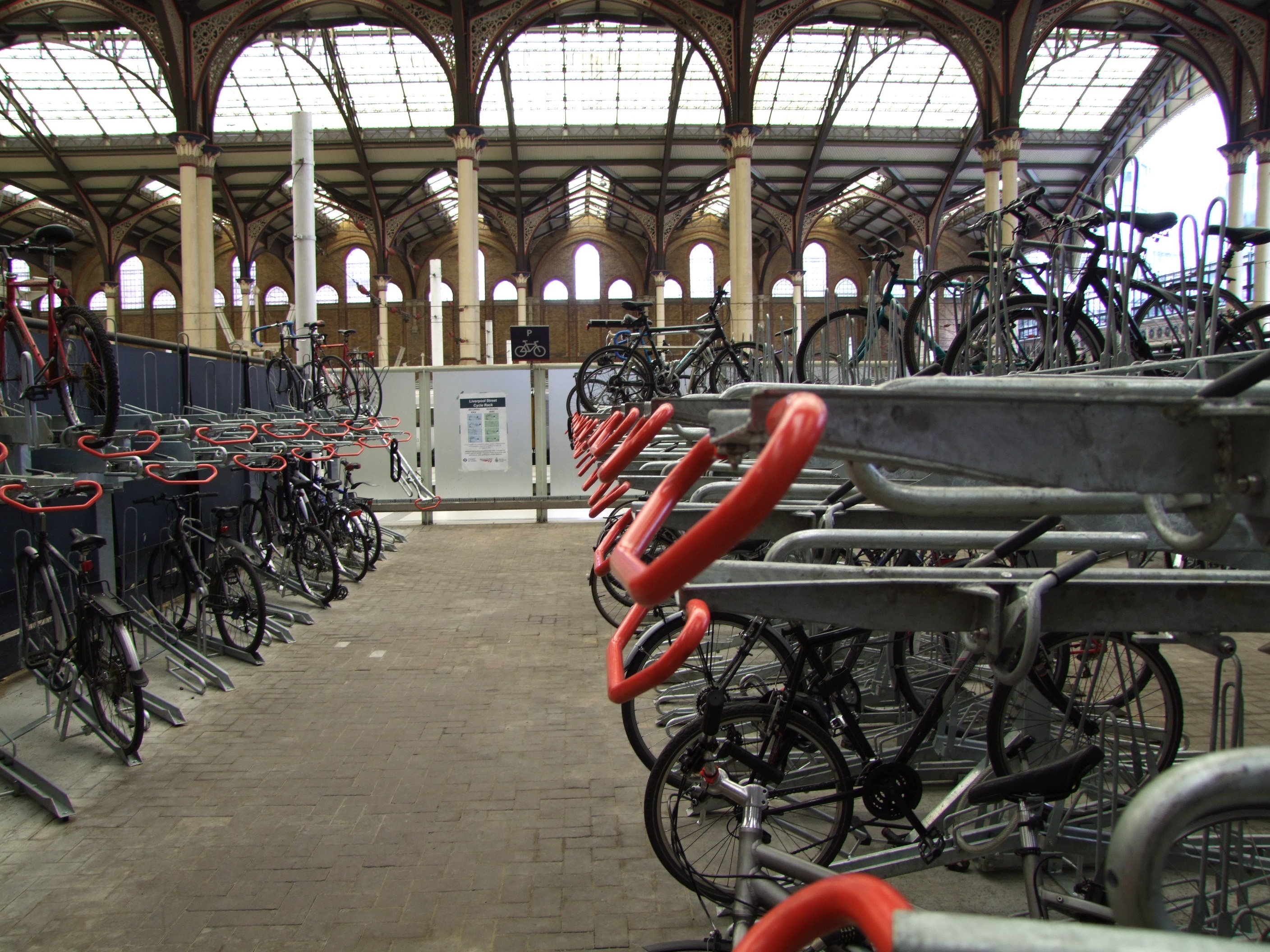Double-deck racks providing 233 cycle parking spaces have been installed at Liverpool Street station to provide cyclists who want to combine rail travel and pedal power with a secure place to leave their bikes.
