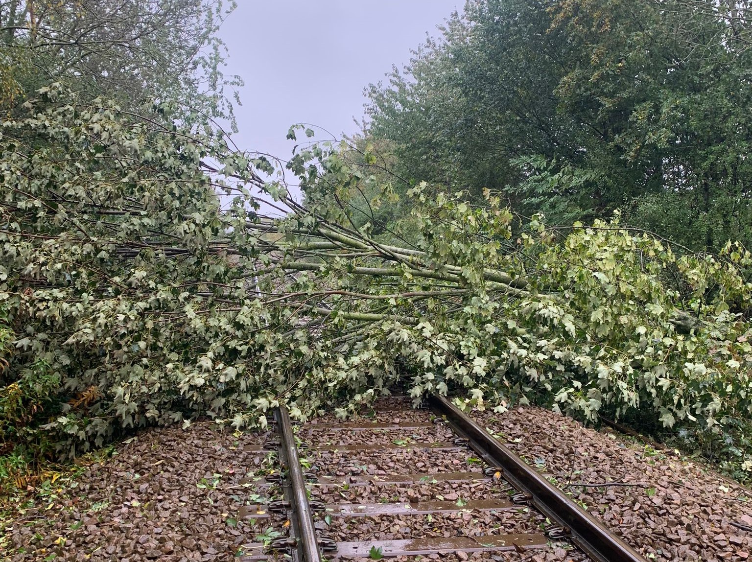 Strong winds can blow debris onto the railway line, including trees, which can block the track and cause delays to trains. Overhead power lines can also be affected, severing the power supply to trains. High winds can also make repairing faults more difficult, meaning that repairs can take longer to complete.