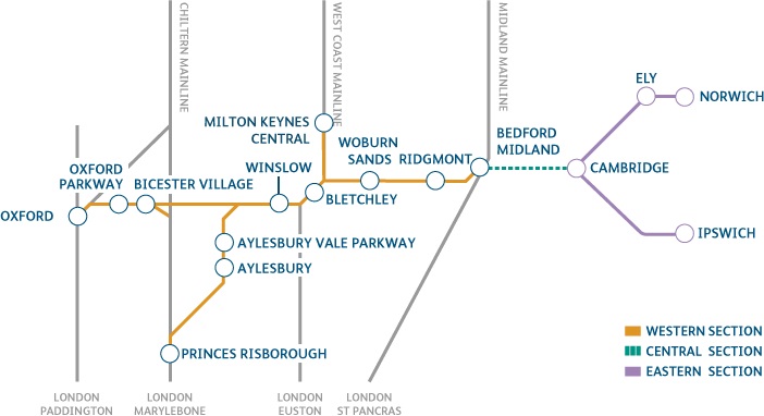 - Milton Keynes – Aylesbury – London Marylebone (an extension of the existing service between Marylebone and Aylesbury Vale Parkway, with stops anticipated at Bletchley, Winslow, Princes Risborough and High Wycombe)