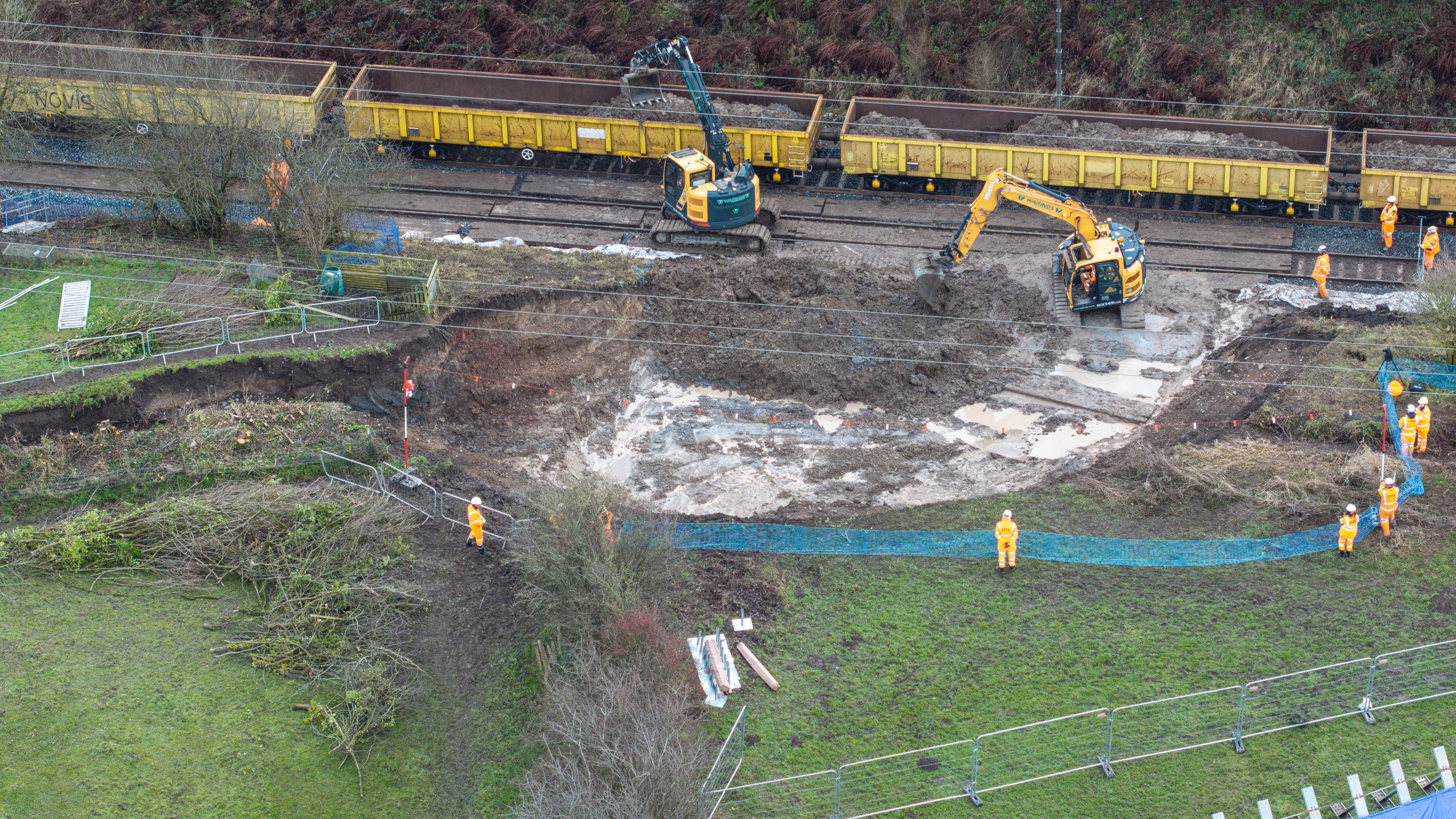 Strong winds and heavy rain bought about by Storm Bert in November caused a nearby watercourse to break its banks, with 300 tonnes of earth spilling onto the tracks.