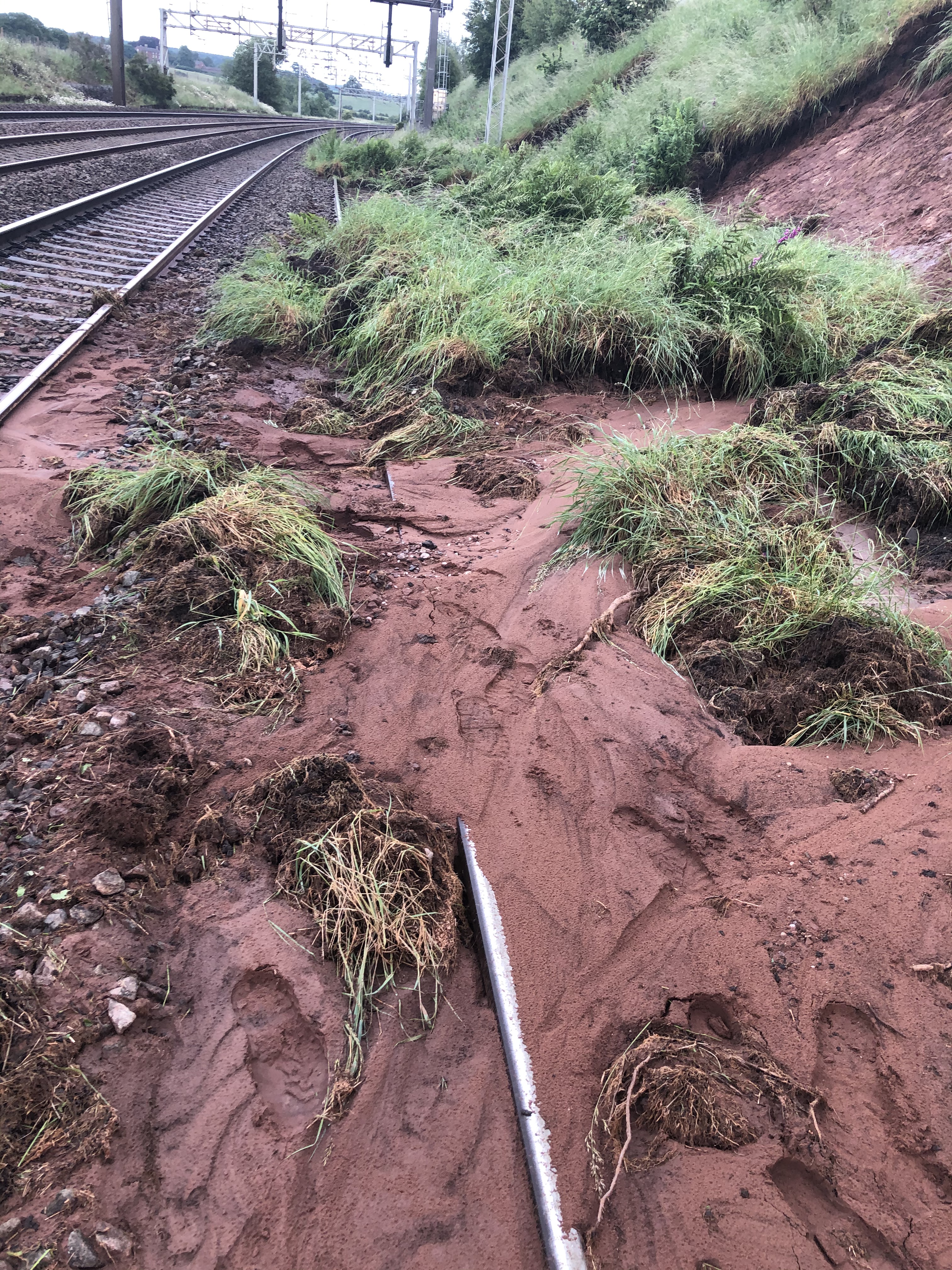 Last night (16 June) 180 tonnes of earth slipped onto the railway after persistent heavy rainfall near Whitmore, Staffordshire.
