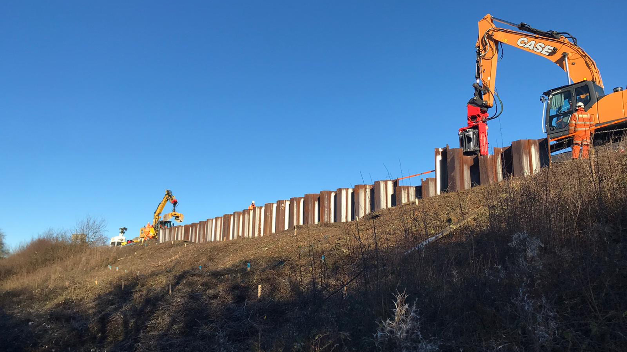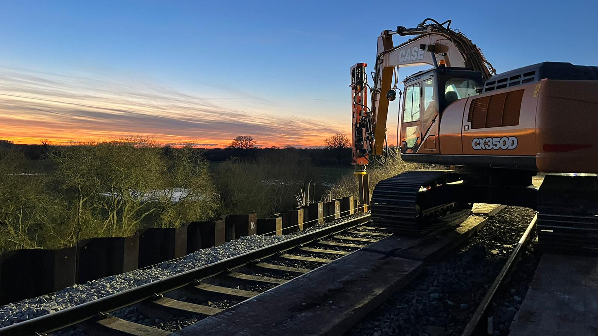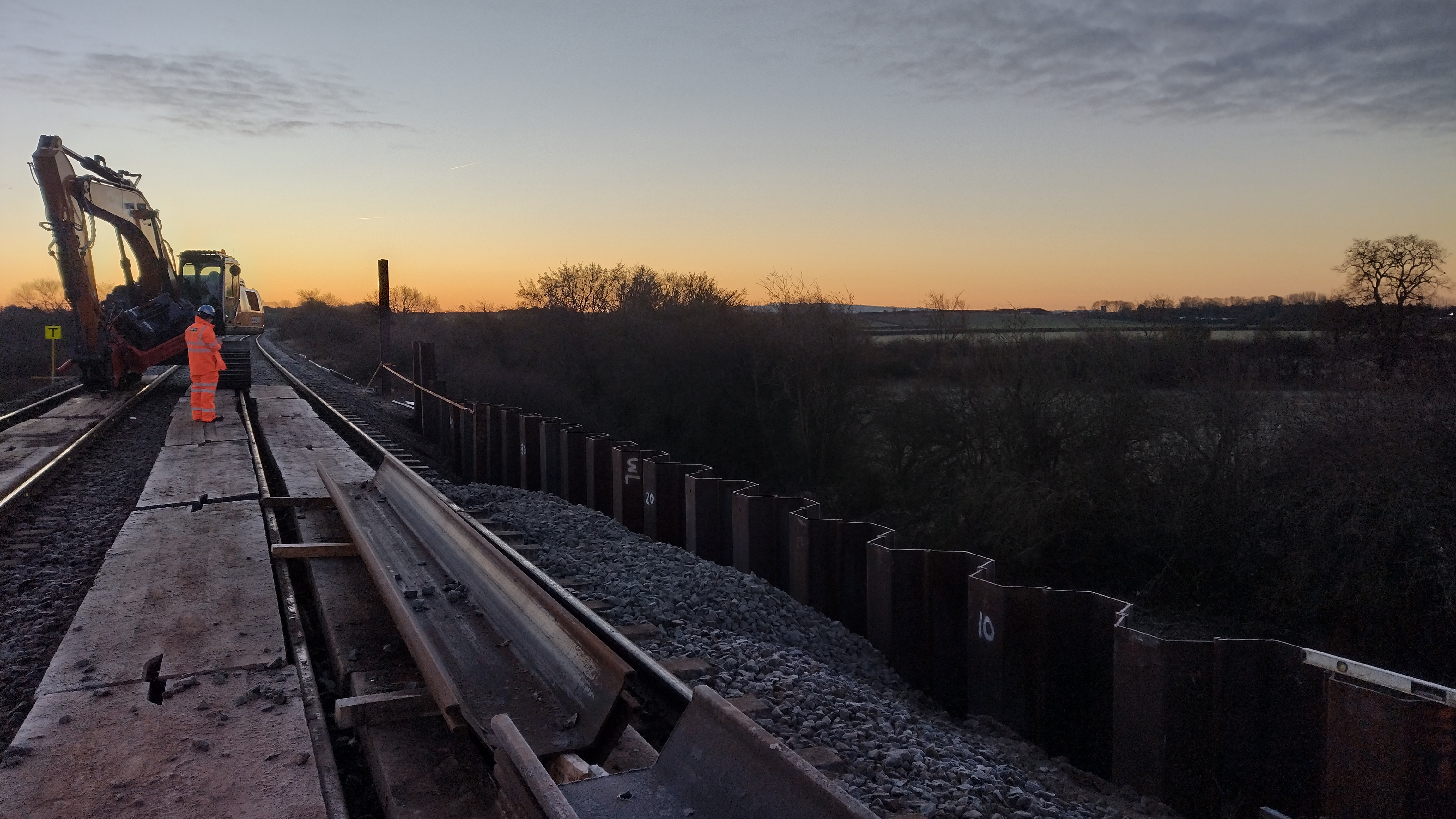 Network Rail has worked round-the-clock with its contractor Murphy to drive 65 new steel piles into the ground next to the affected section of track. Approximately 3,000 tonnes of ballast (railway stone) has been used to rebuild the embankment and support the tracks above.