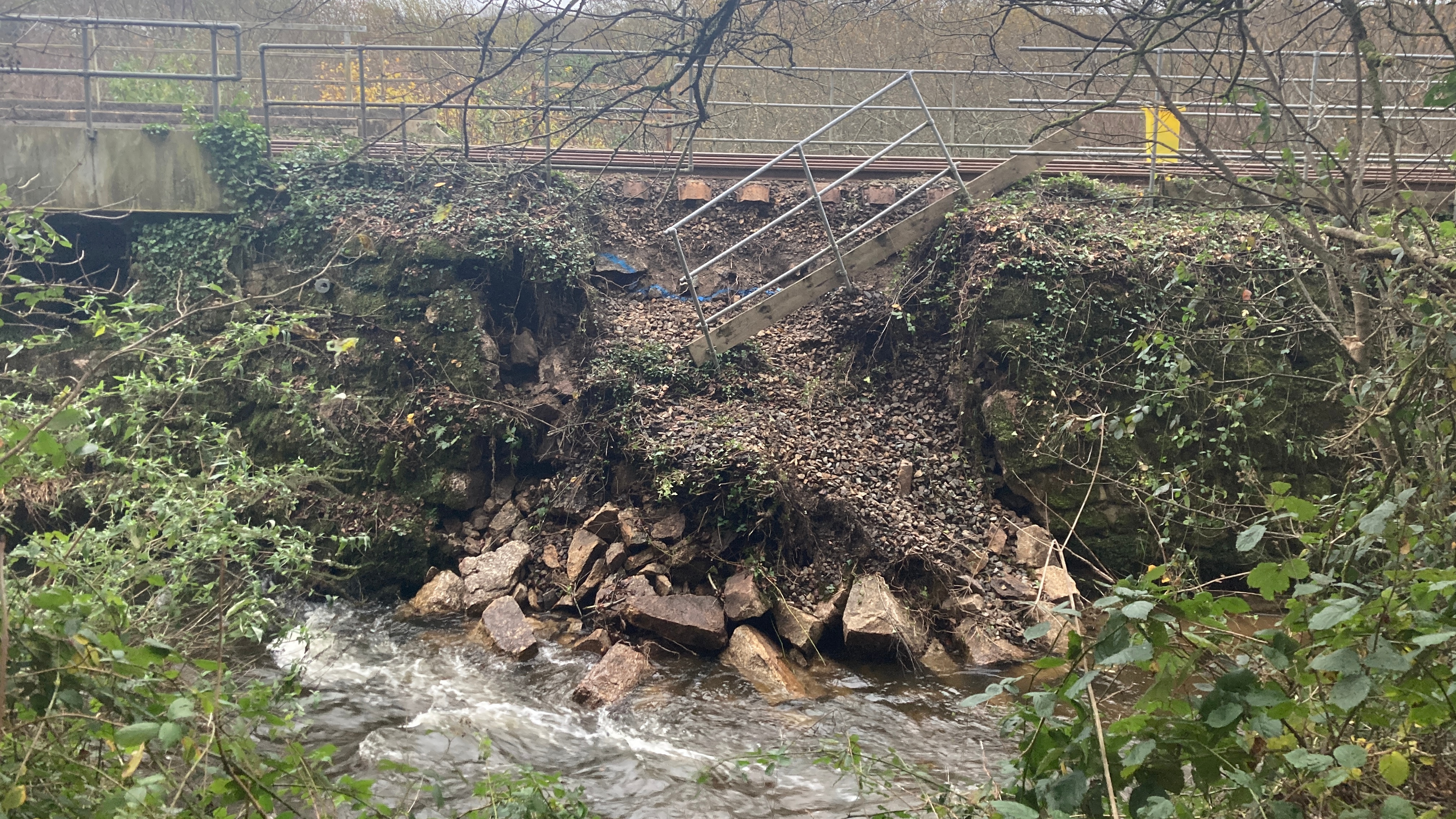 Last week, engineers working on the line discovered that a retaining wall on an embankment near Pontsmill viaduct had fallen into the river below, displacing a significant amount of ballast - the stones which hold the tracks in place.