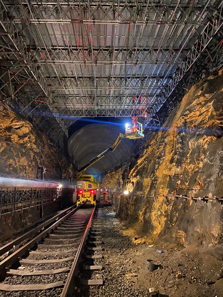 The Network Rail Civils Internal Delivery team were also specially trained and accredited to use the ‘ram-arch’ system to provide structural support to the tunnel ceiling.