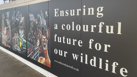 The artwork entitled ‘ensuring a colourful future for our wildlife’ is a print of three oil paintings by Cindy Powell, an artist based in Wiltshire and an MA student at Falmouth University.
