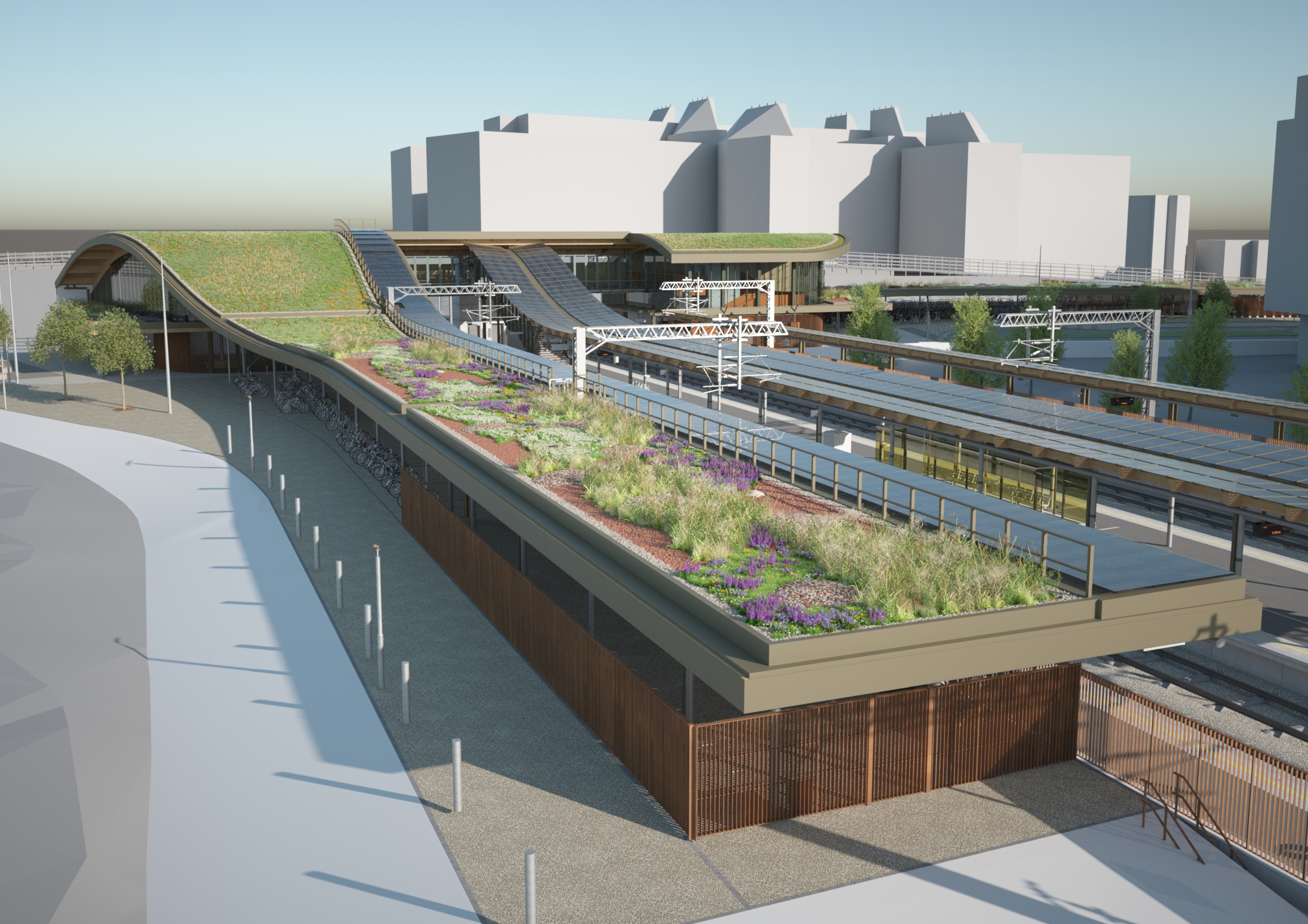 The restoration and the extension of a nearby nature reserve planted with 18,000 trees, plants and shrubs will be the cornerstone of the new station’s environmental and biodiversity legacy.