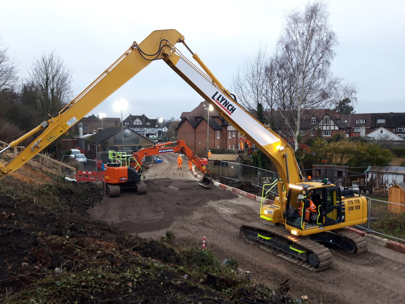 Teams worked around the clock to build a 40 metre long sheet pile wall, constructed of 71 sheet steel piles which are 13 metres long. The section of the embankment that failed was removed using excavators and is being rebuilt with 2,400 tonnes of fill material behind the sheet pile wall.