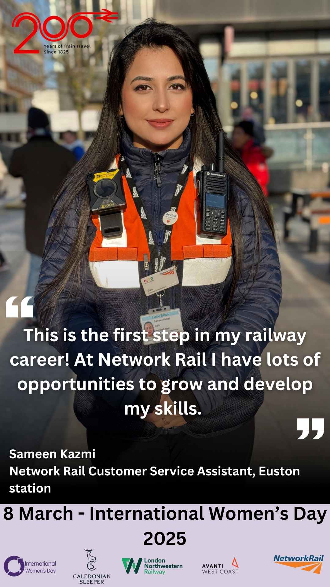 This year’s IWD theme, #AccelerateAction, calls for a more inclusive world where diversity is valued and celebrated. As part of this, a series of posters are being displayed at Euston station and videos are being shared across social media, introducing some of the inspiring women who help keep the railway running smoothly. Featuring portrait photos and personal quotes, these stories will highlight their contributions, experiences, and the progress being made towards greater gender equality in the rail industry.