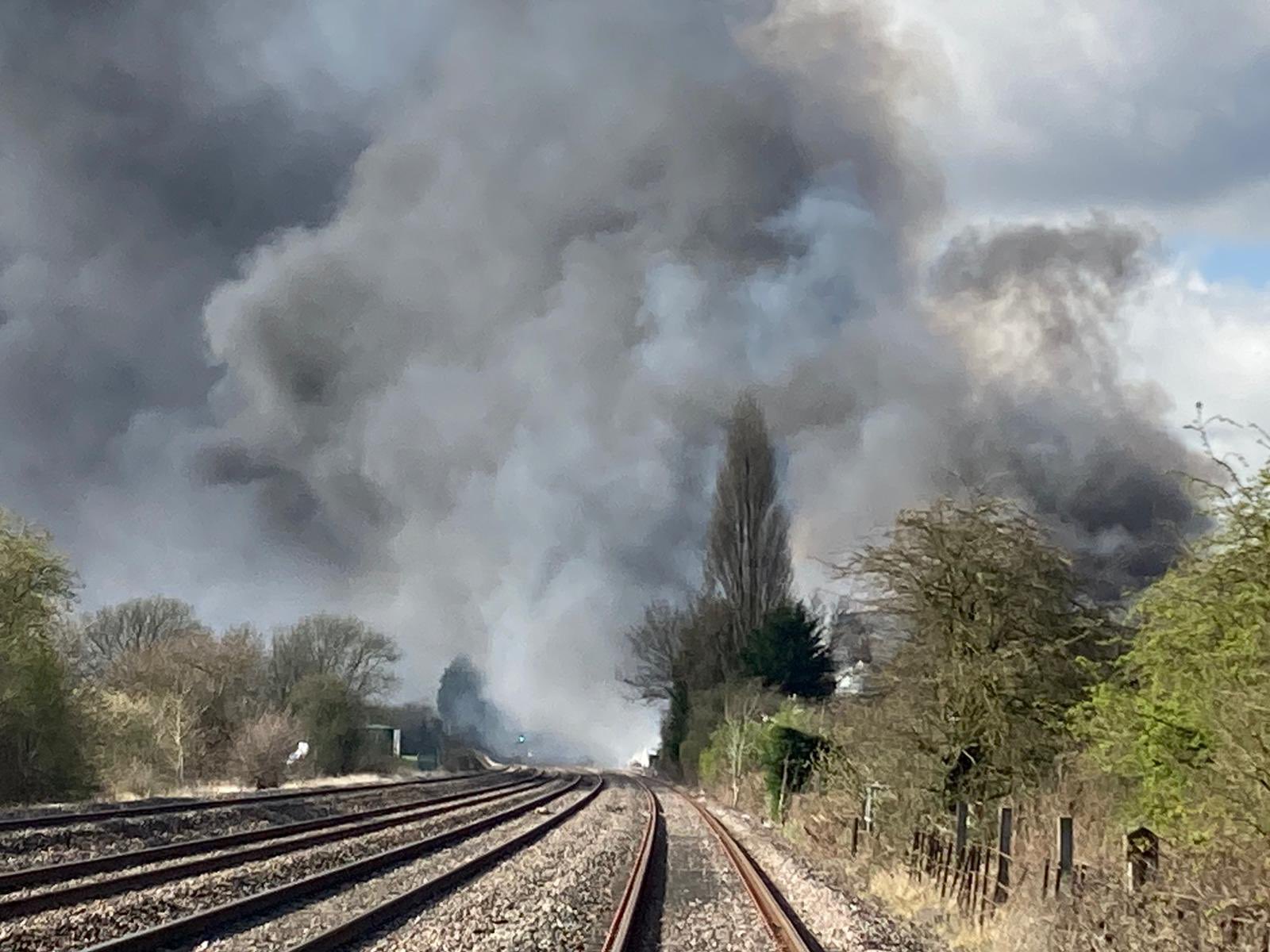 The major fire – which began in the early hours of Thursday 31 March – has been close to the railway line throughout the day. This meant that trains in the area had to be stopped or diverted to keep everybody safe.