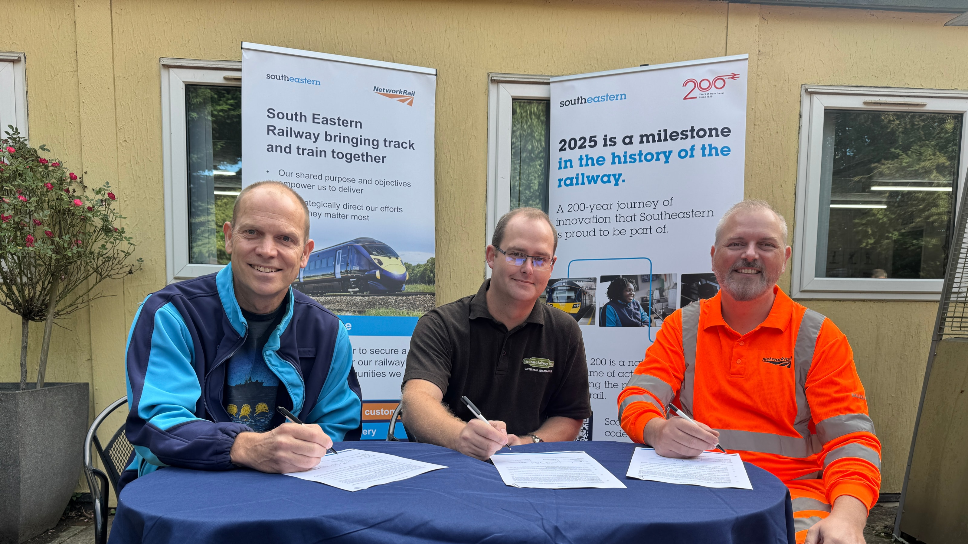 The signing marks the first such agreement in Kent between the publicly-owned South Eastern Railway, in which track and train come have come together as the Government moves towards Great British Railways, and a volunteer-led heritage railway – the East Kent Railway.