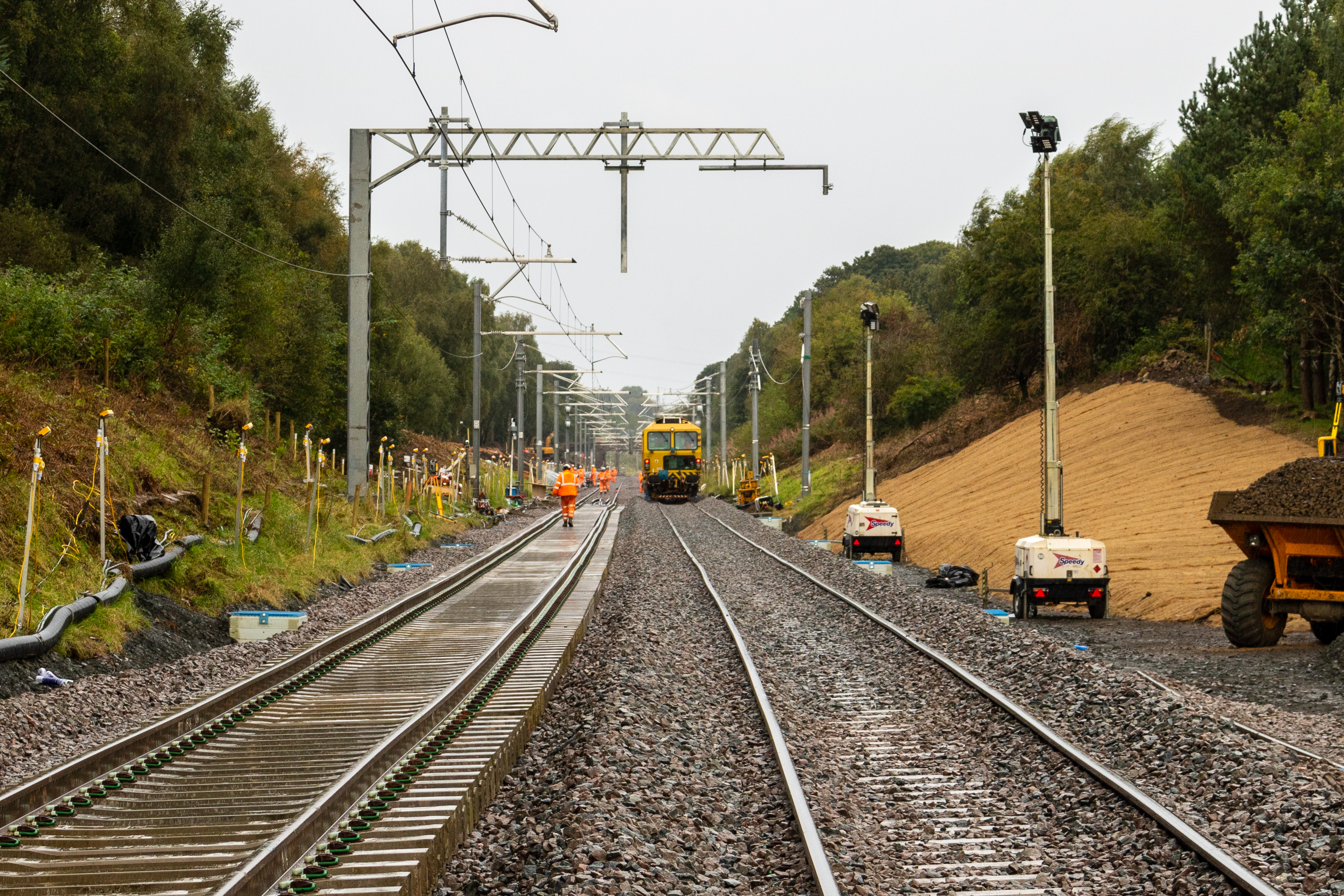 A kilometre of new double-track railway has also been laid consisting of more than 4,500 metres of new rails and 4,424 concrete sleepers along with 10,000 tonnes of new ballast requiring 27 engineering trains. Over 3,000 metres of signalling cables have been re-laid and two new twin track overhead power gantries installed.