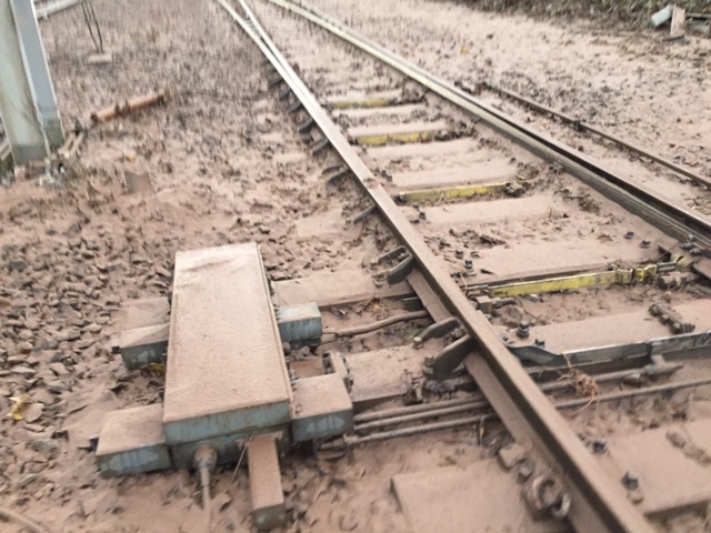 A thick layer of mud and silt has covered vital safety-critical equipment in eight separate cabinets which were submerged in water for more than 24 hours. There has also been extensive damage to track and other lineside equipment as well as to fencing and buildings.