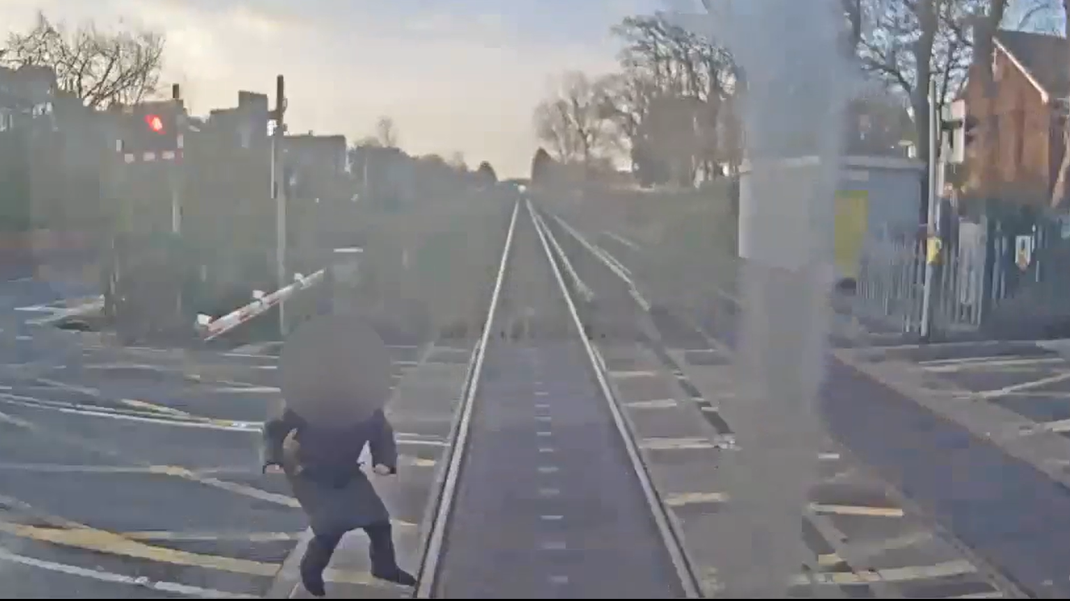Footage released showing near miss at level crossing in Merseyside