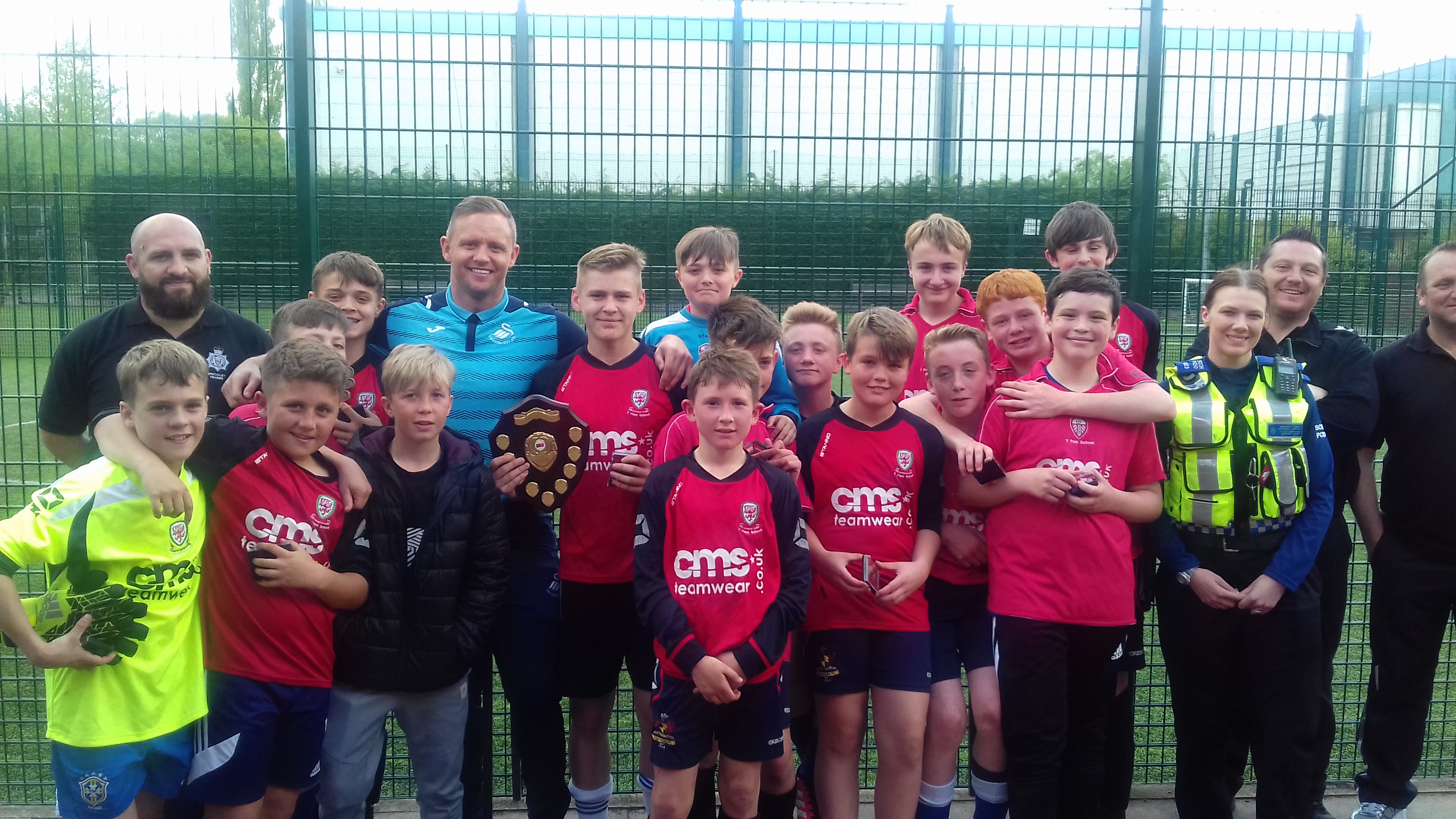 Swansea’s Bishop Vaughan Catholic School won the five-a-side tournament for the boys and Caerleon Comprehensive School were the champions of the girls’ tournament. There was an extra special surprise at the Merthyr Tydfil regional heat, when ex-Swansea City and current Llanelli Town footballer, Lee Trundle, presented the winning team Y Pant Comprehensive with their medals.