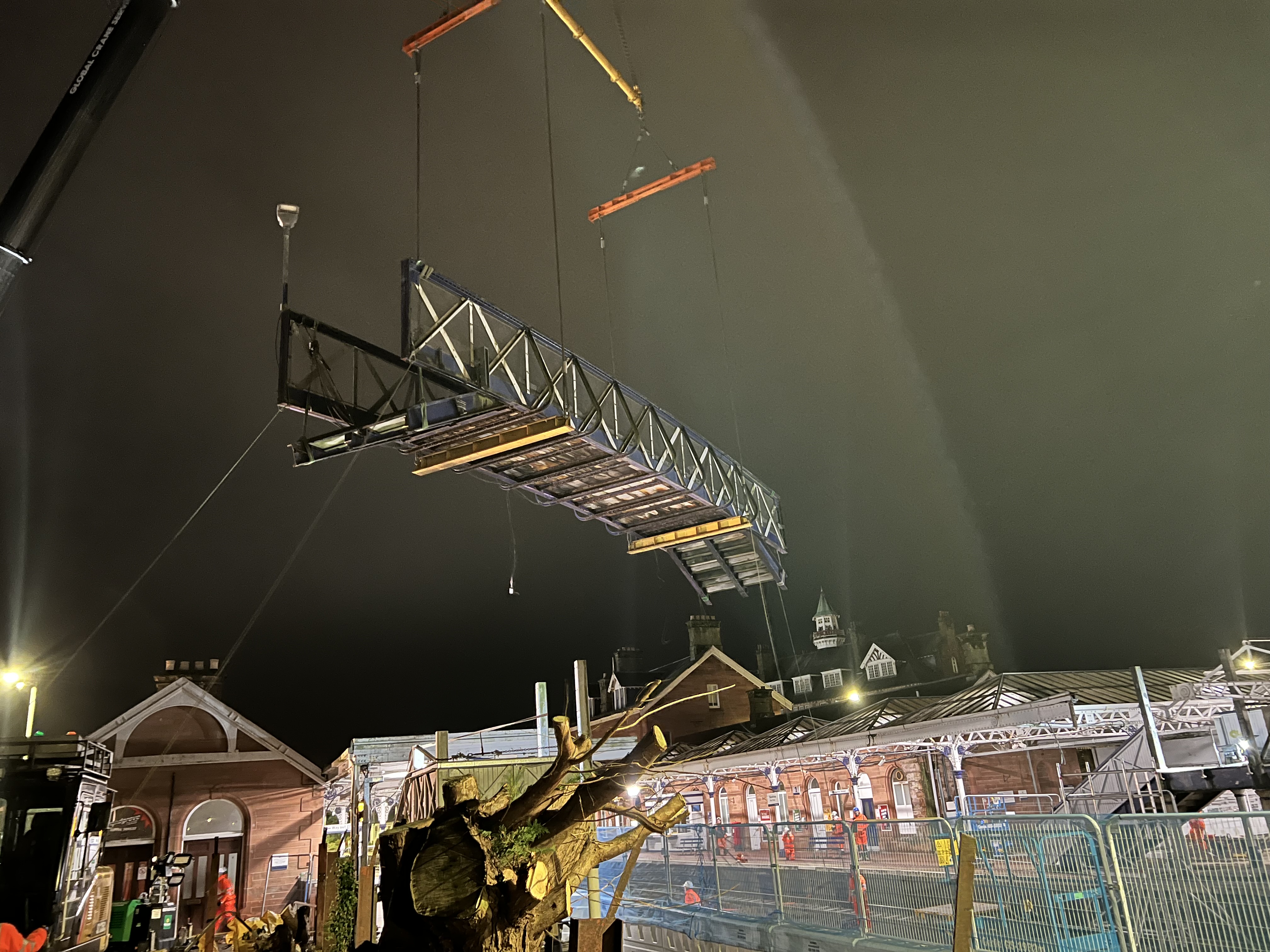 Dumfries station footbridge was successfully removed over the course of Saturday night (16 December).