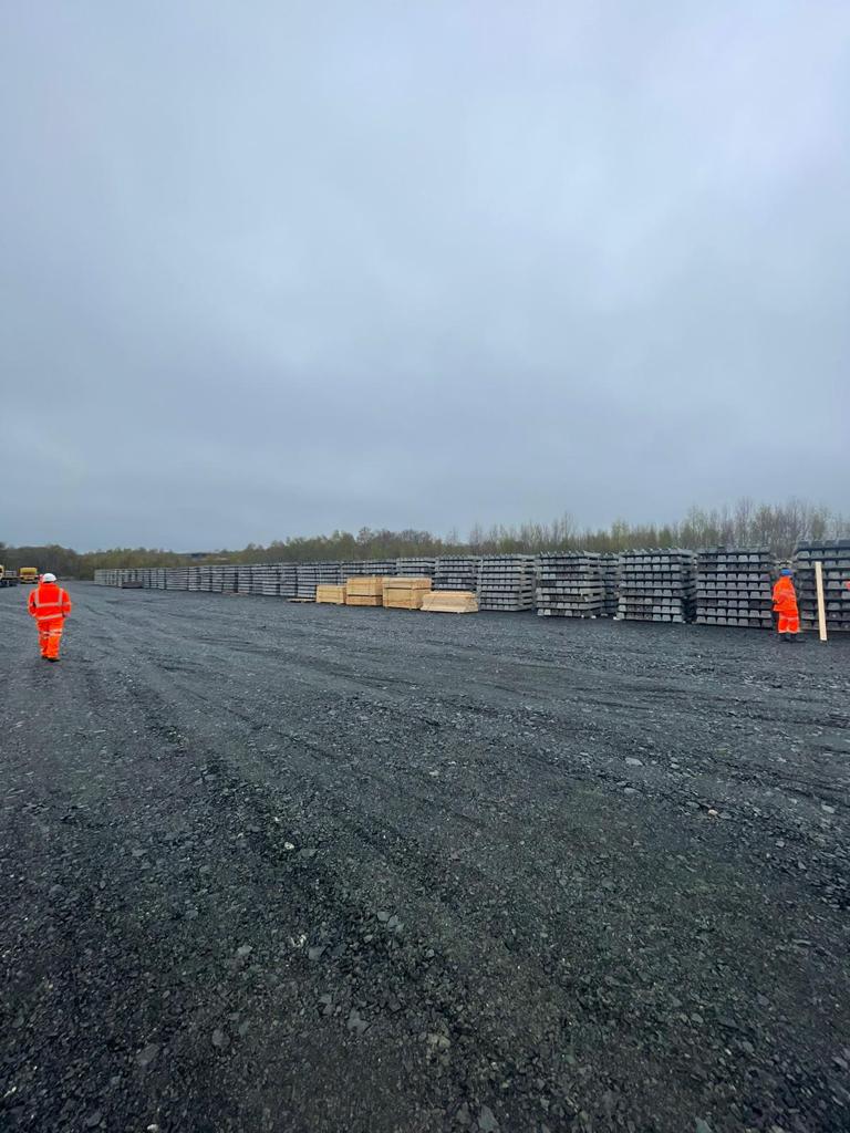 The sleepers were delivered over a four-week period with a proportion of the former shunting yard being given over to storing the components while the old rails are lifted and cleared and the new railway formation is created.