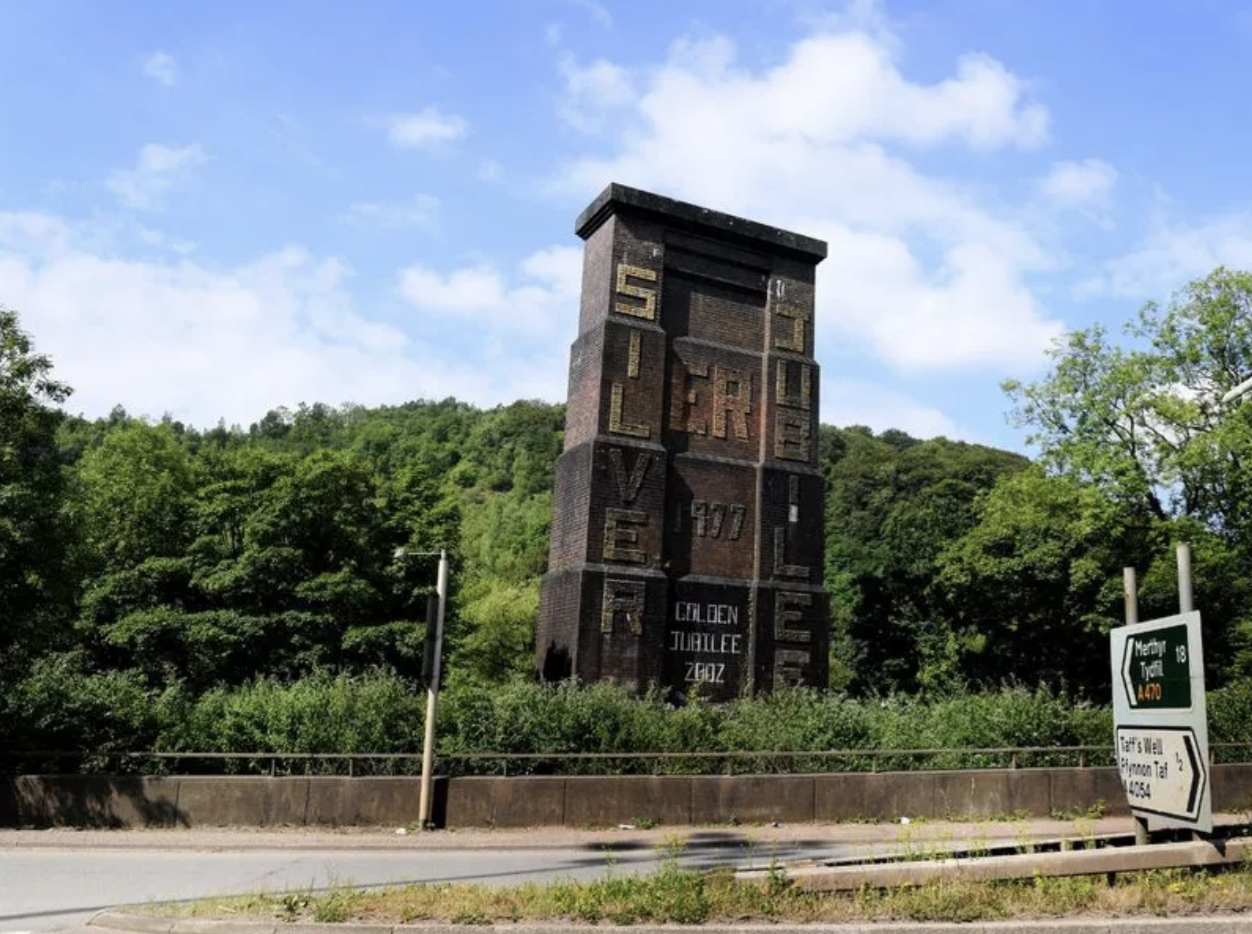 The village of Taff’s Well sits just north of Cardiff, nestled in the narrow Taff Valley between the steep slopes of the Garth Mountain and Craig yr Allt. As well as being home to the spring, whose warm mineral waters have attracted visitors for centuries for their supposed therapeutic properties, the village also hosts a striking, slender brick monolith of a chimney. It stands proud, and somewhat out of place, beside the busy A470 dual carriageway. The faint lettering still visible on its side might mislead passers-by into thinking it is a modern folly, perhaps erected in 1977 to commemorate the Silver Jubilee of Queen Elizabeth II.