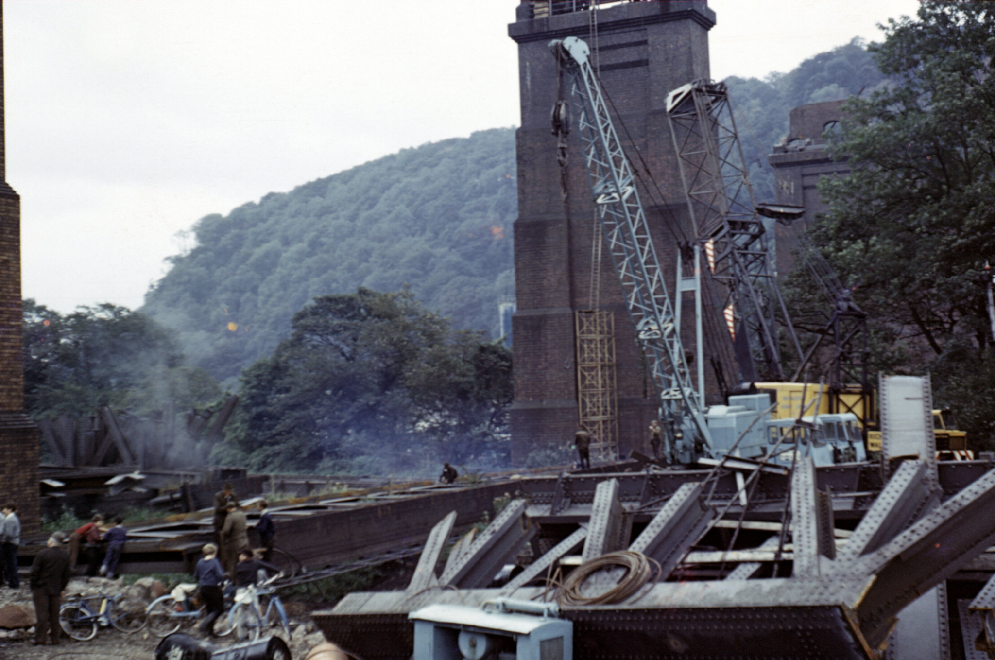 Image: The public watch the dismantling of the viaduct circa 1970. Credit - John Bulpin