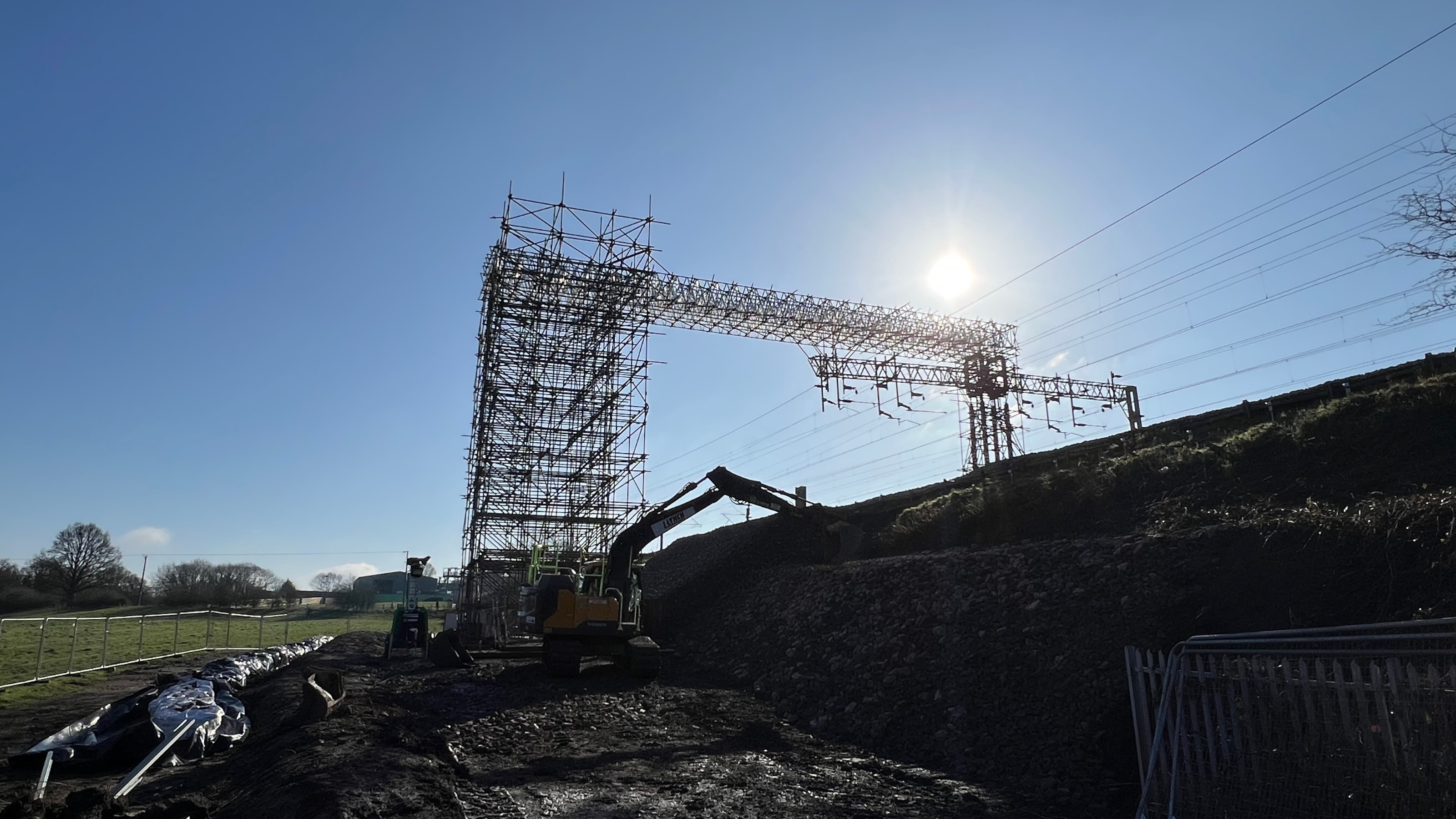 Extensive work has now been completed to allow the railway to fully reopen from today (Thursday 6 February). This has involved modifying the railway embankment, realigning the affected section of track and relocating a metal prop to keep the overhead line structure safe.