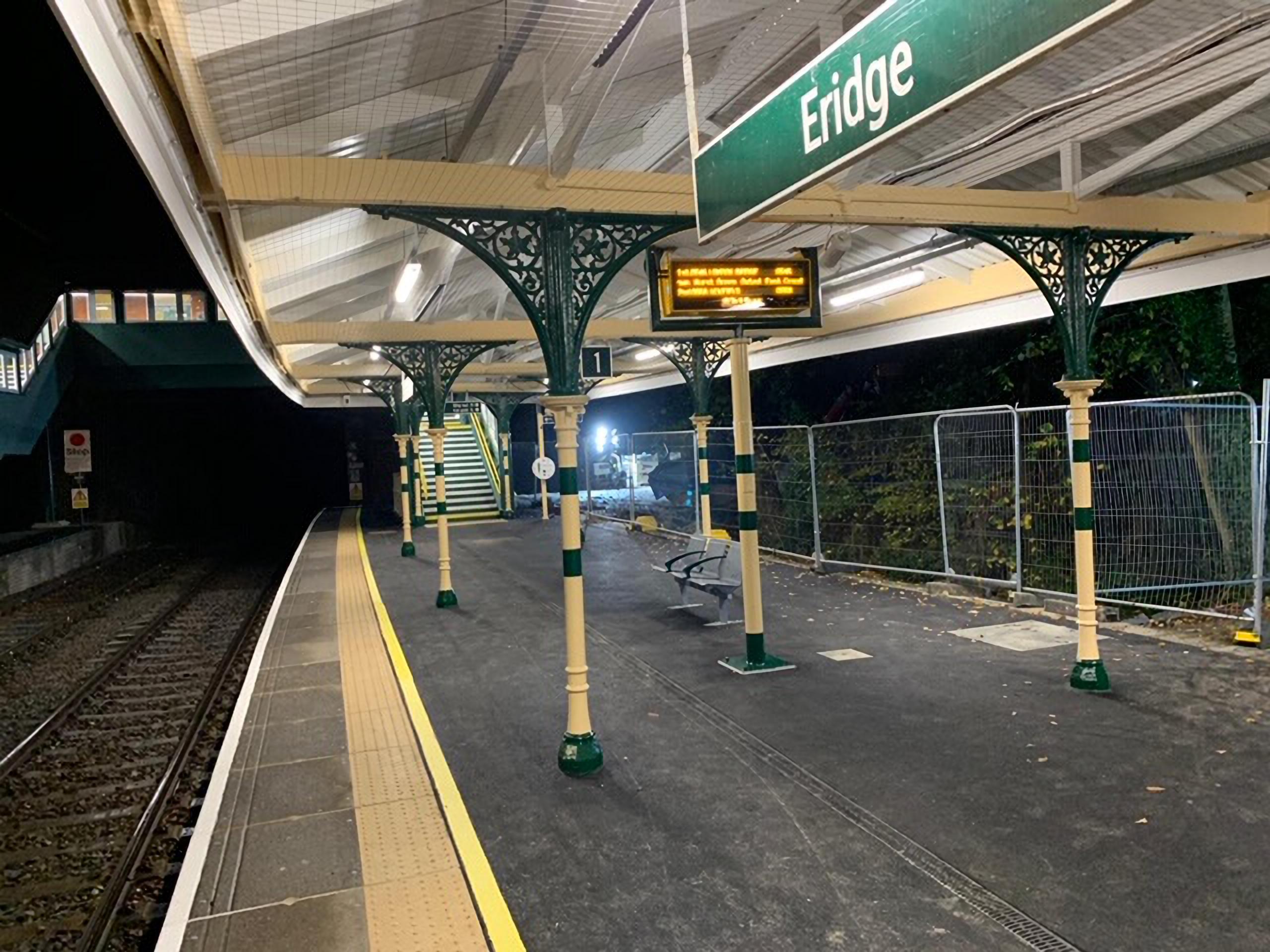Passengers will now benefit from improved platforms at Eridge station in East Sussex which follows on from the £1.8m footbridge and canopy upgrade last year.