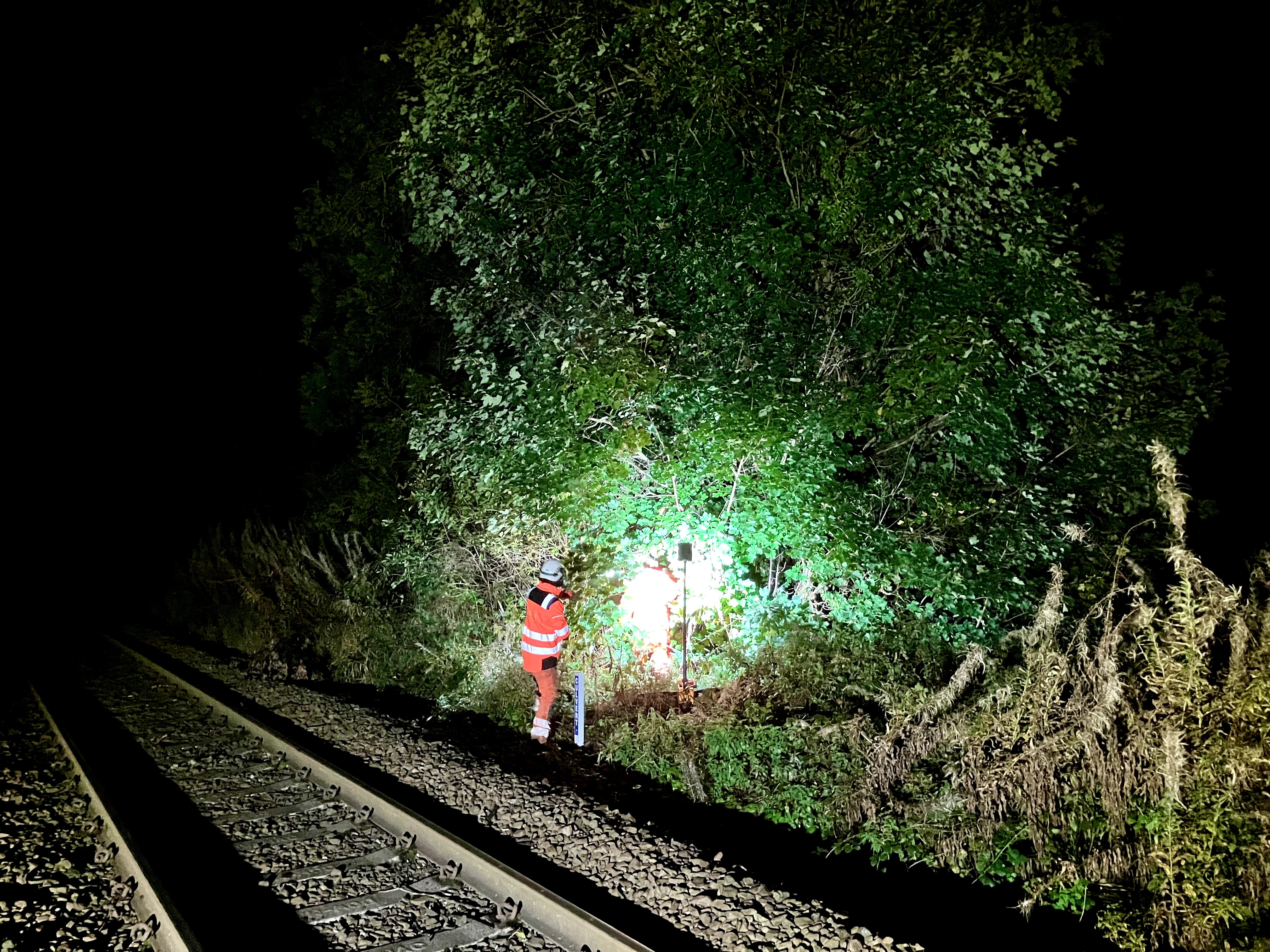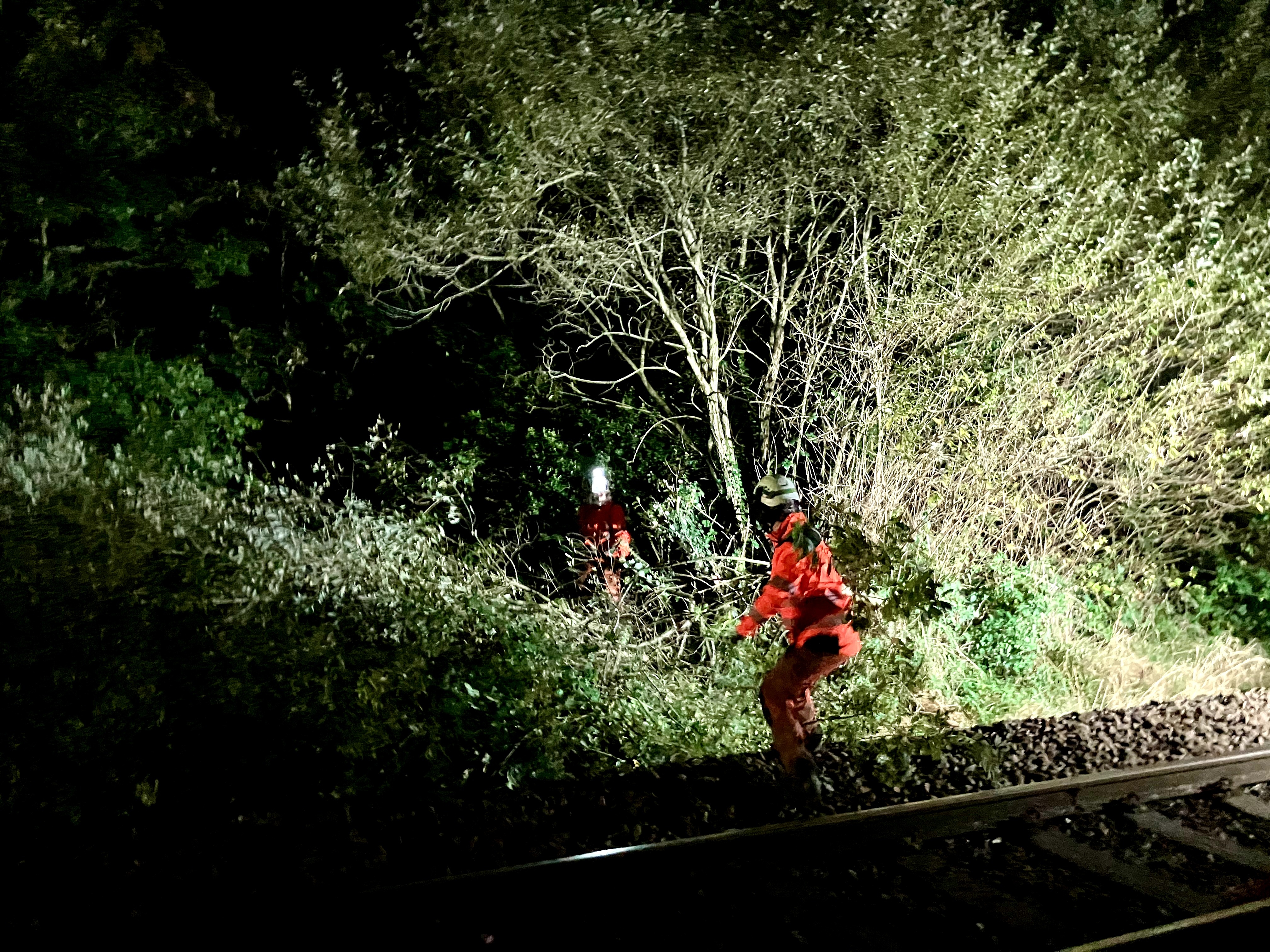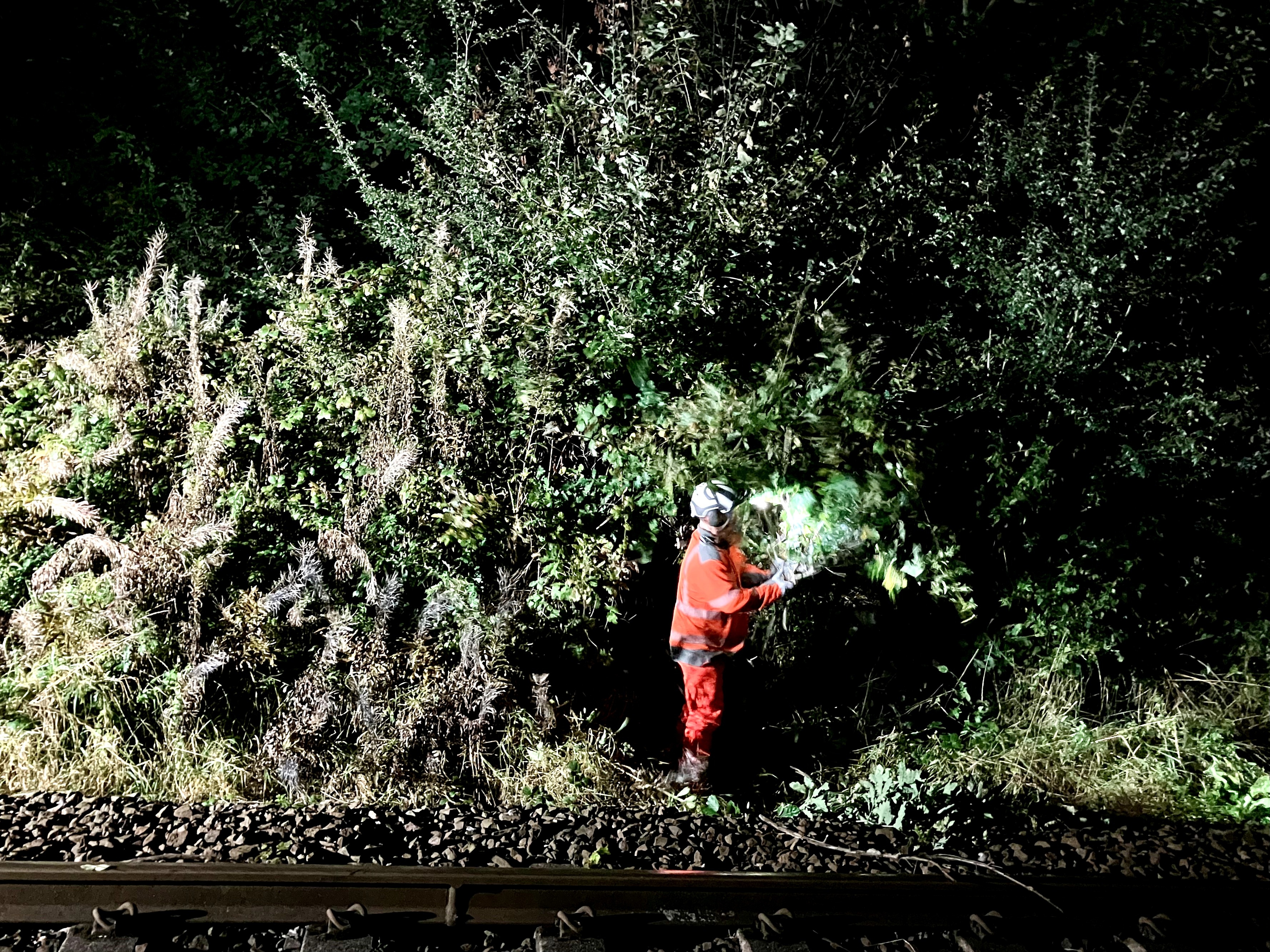 Teams have been working through the night for the past few weeks – and will continue for several more weeks – to remove trees that pose a safety risk to the railway at every station between Wrexham General and Hawarden Bridge.